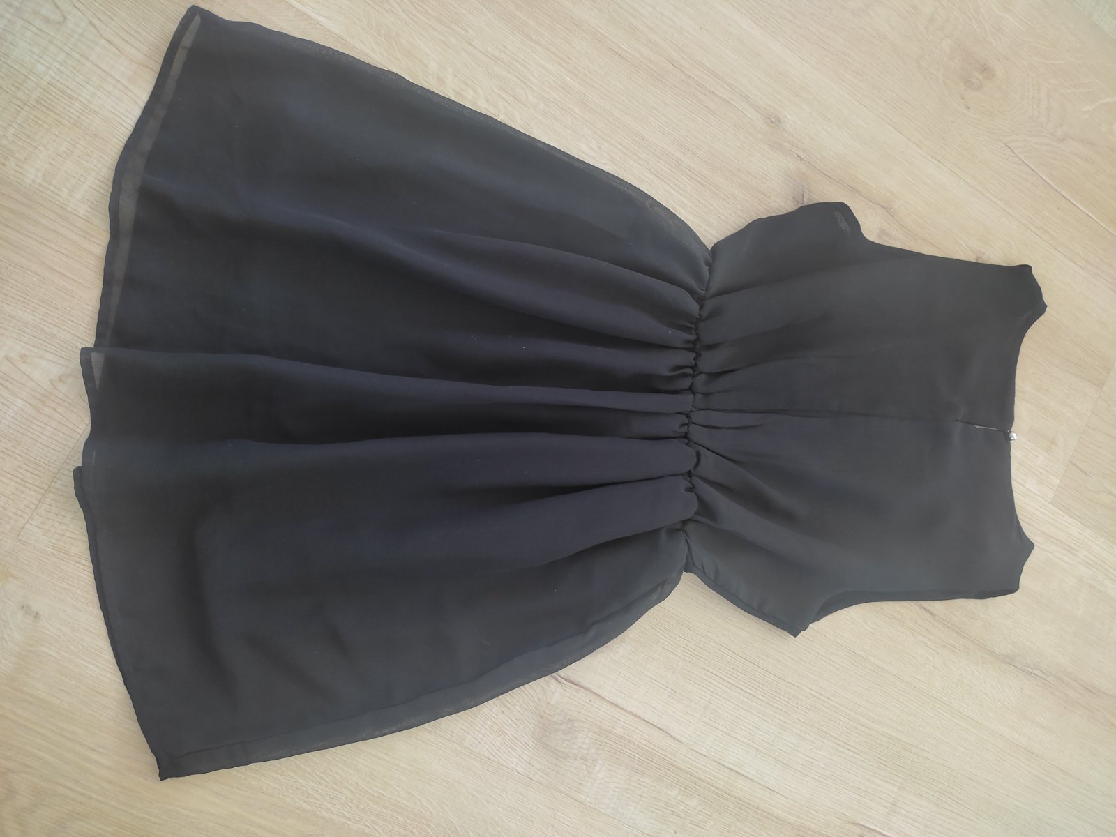 Ľahké šaty z tylu v super stave bez poškodenia.Velkost je odstrihnúta ale je to také S ,ale v páse je gumička ,tak sa prispôsobia.Celkova dĺžka je 85cm,šírka pod pazuchami 48x2cm.