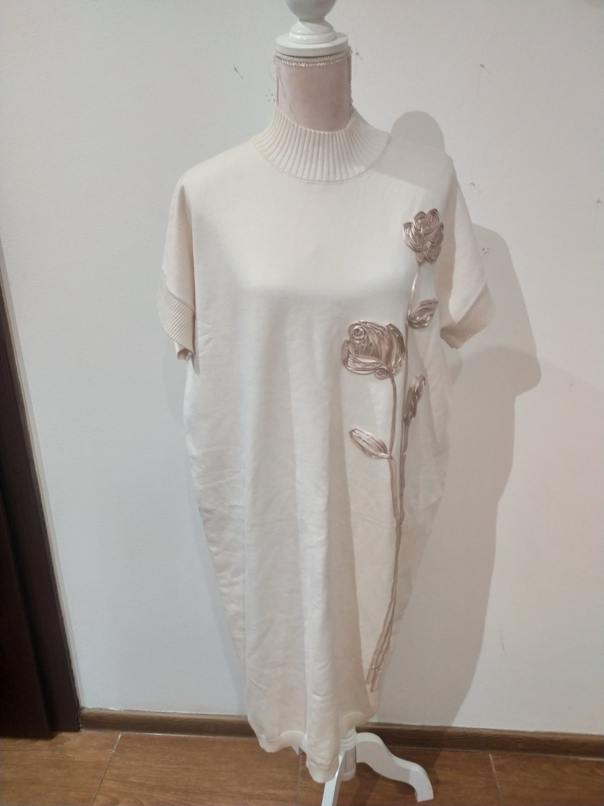 Krásne pletené šaty s aplikáciou,veľ Uni vhodné pre veľ M-Xl