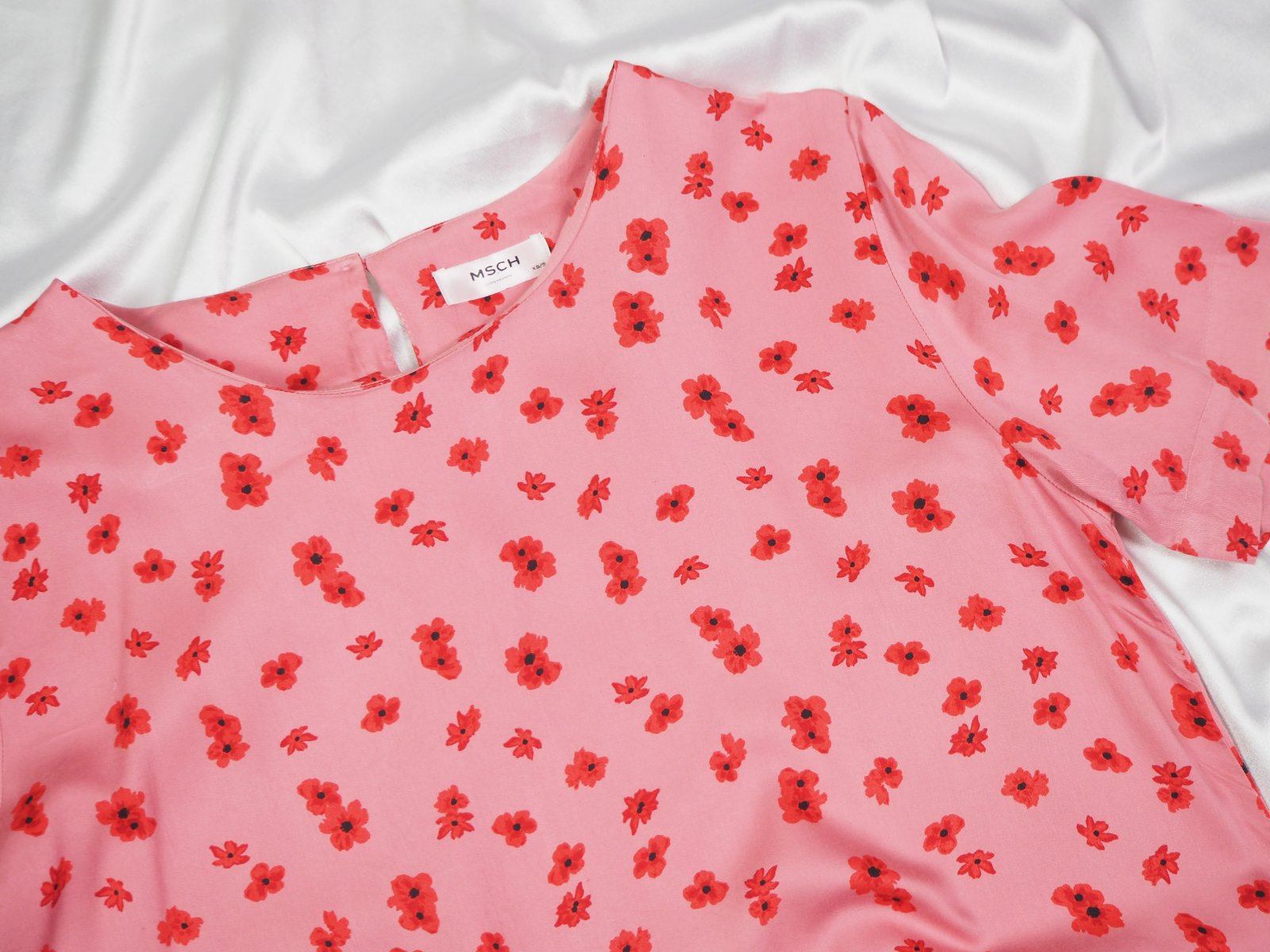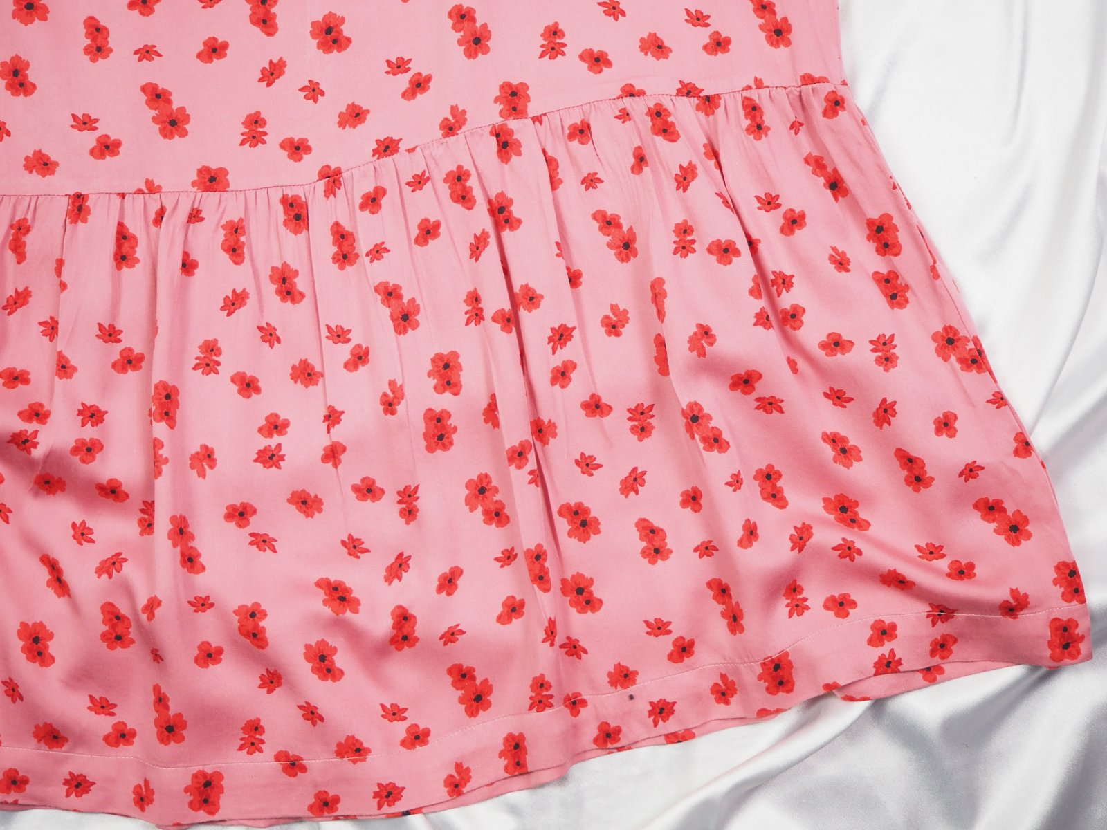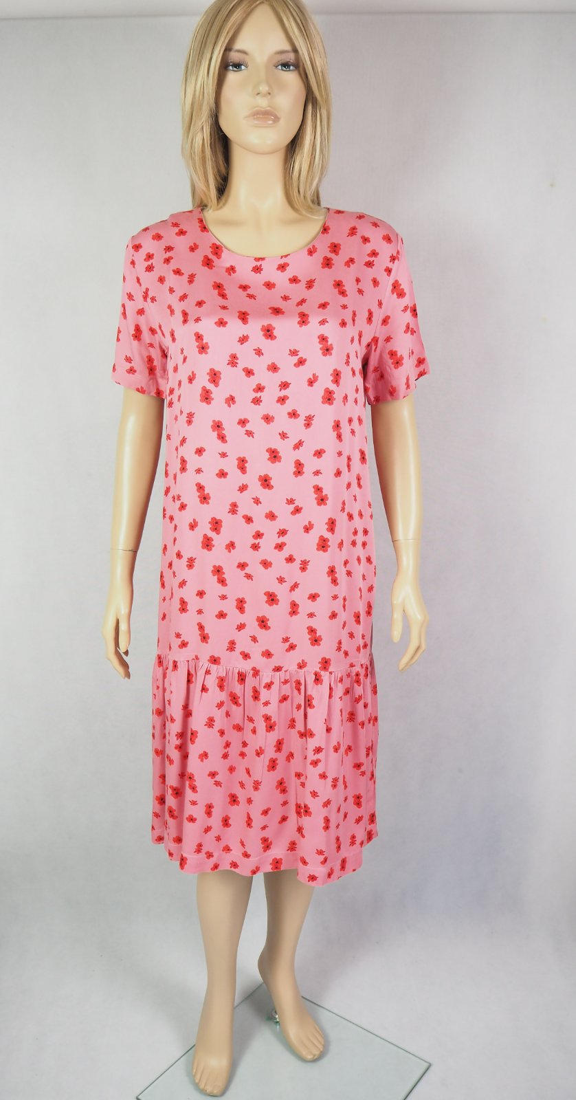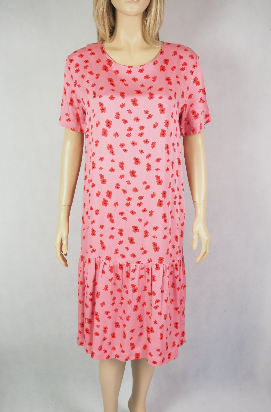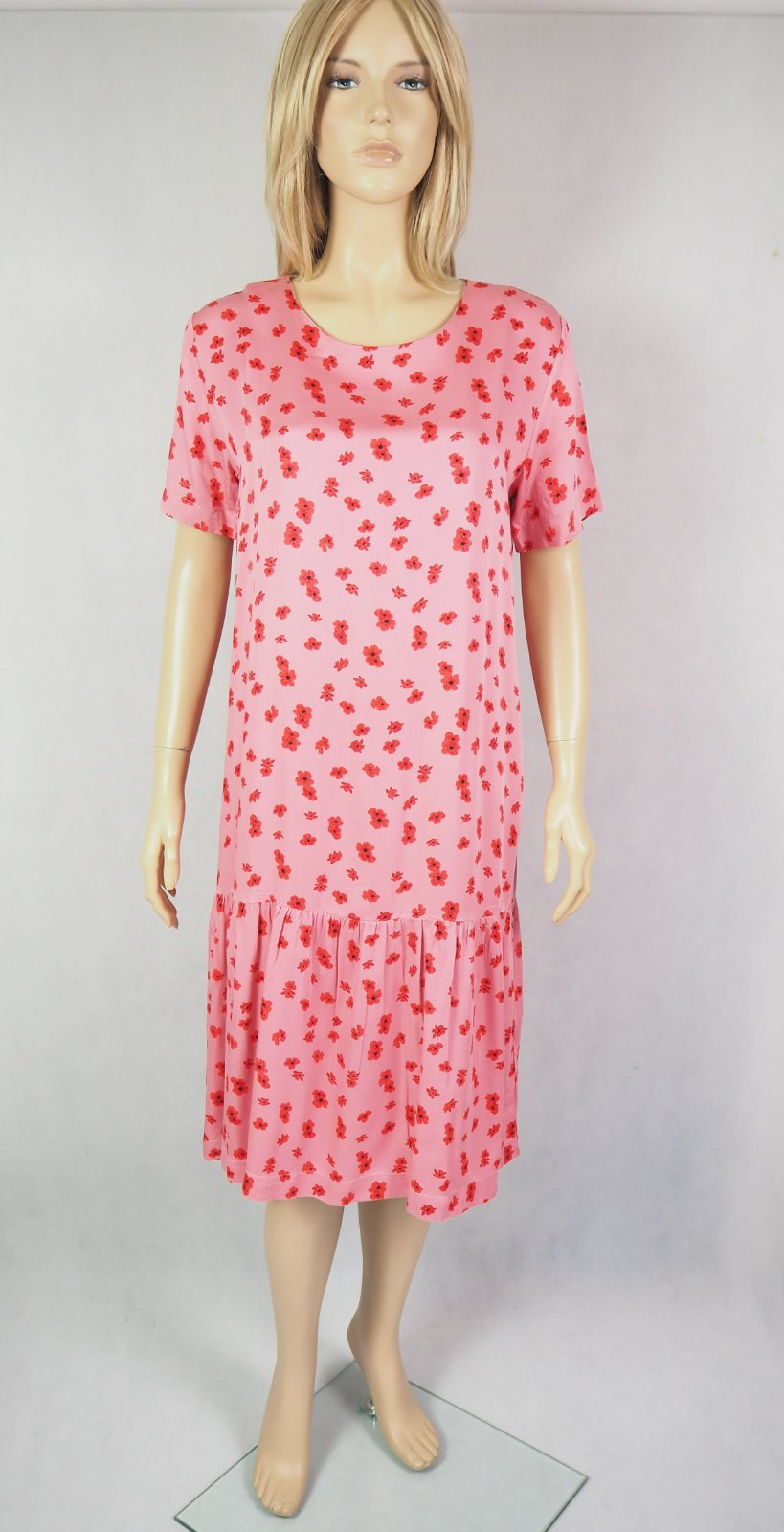 Kvalitné letné šaty ružovej farby s červeným kvietočkami, materiál 100% modal, super stav.