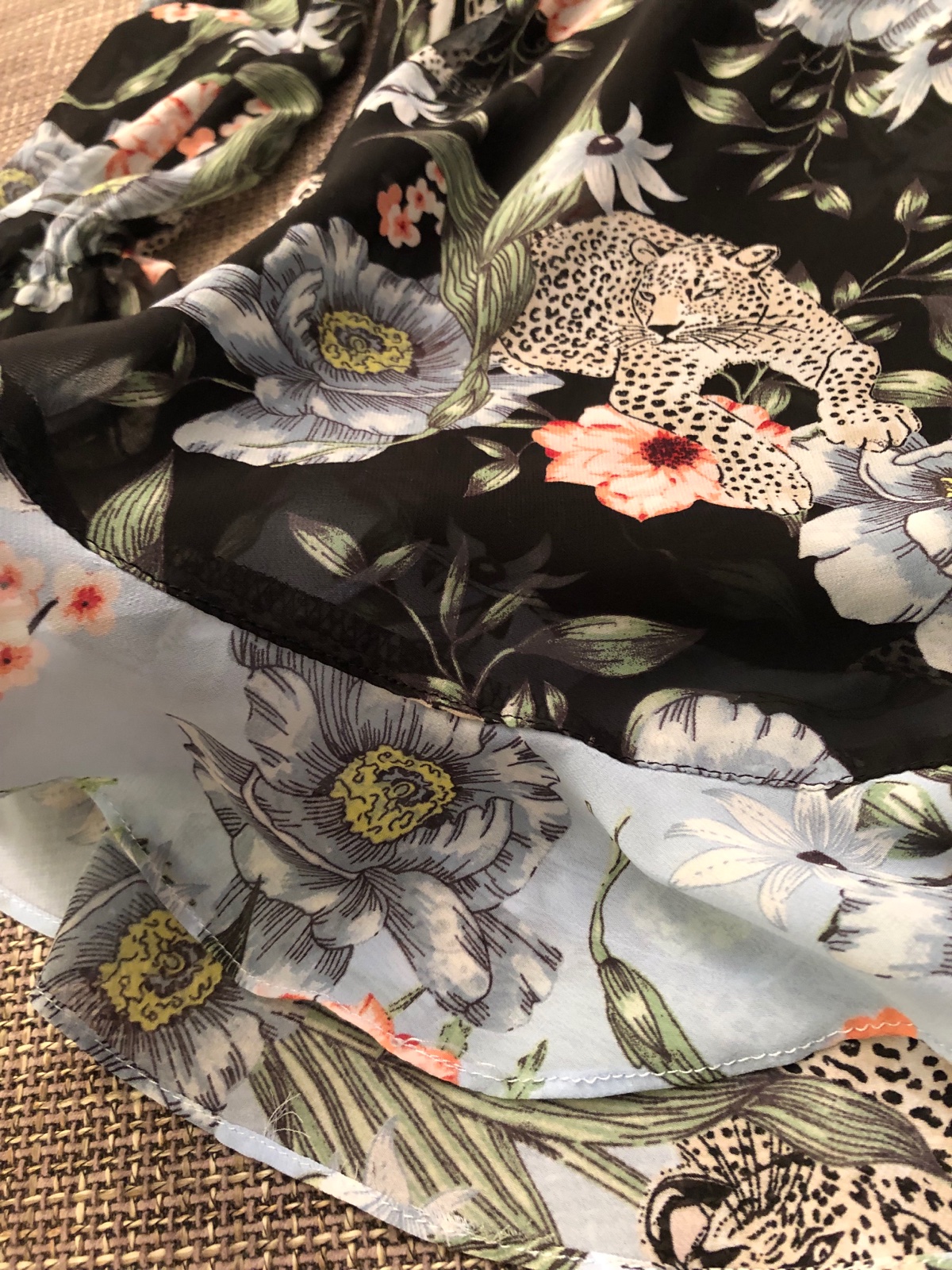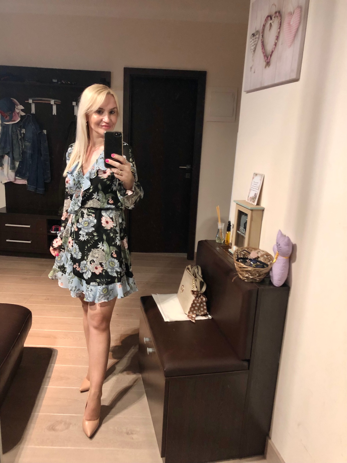 Moje obľúbené šaty s krásnou potlačou a bleducko modrými volanikmi,