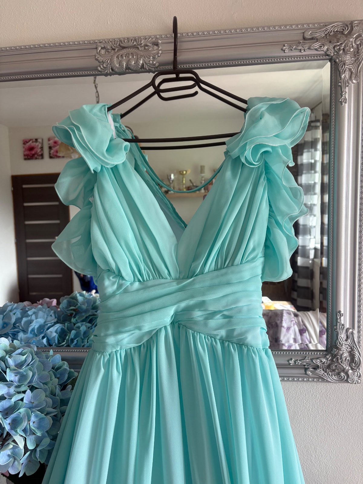 Ponúkam na predaj, krásne šaty s volánmi, nádherne, romantické, ľahké, príjemné pre vílu. Dokonalej farby, strihu, detailného vypracovania. Vzadu sa sťahujú, prispôsobíte, kludne aj S