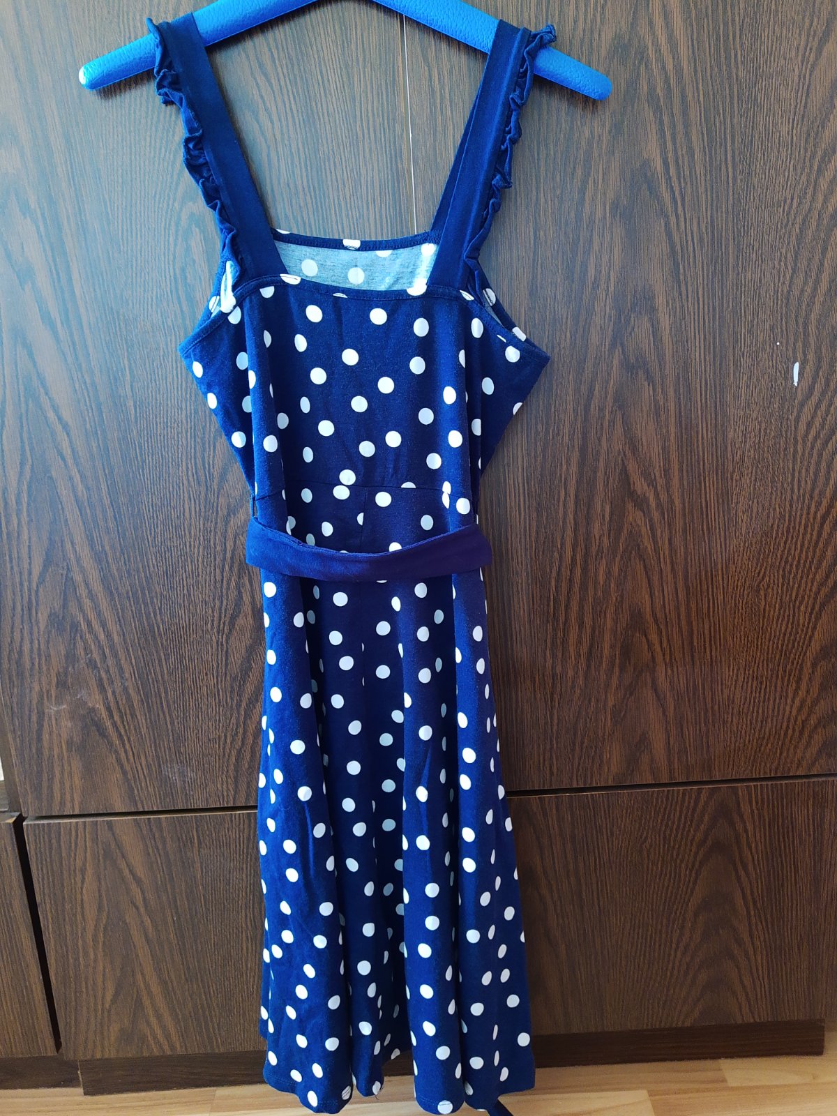 Predam dvakrat oblecene saty s bodkami, áčkivý strih, bez rukavov, s viazanim okolo pasu (saty maju putka a latkova viazacka nie je vsita napevno). Dlzka asi po kolena pri vyske postavy 160 cm. Material bavlna, prijemne, sarmantne letne saty. Cena plus postovne.