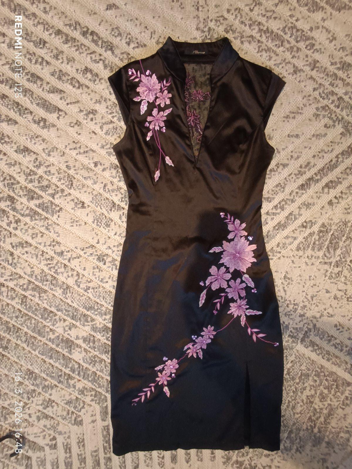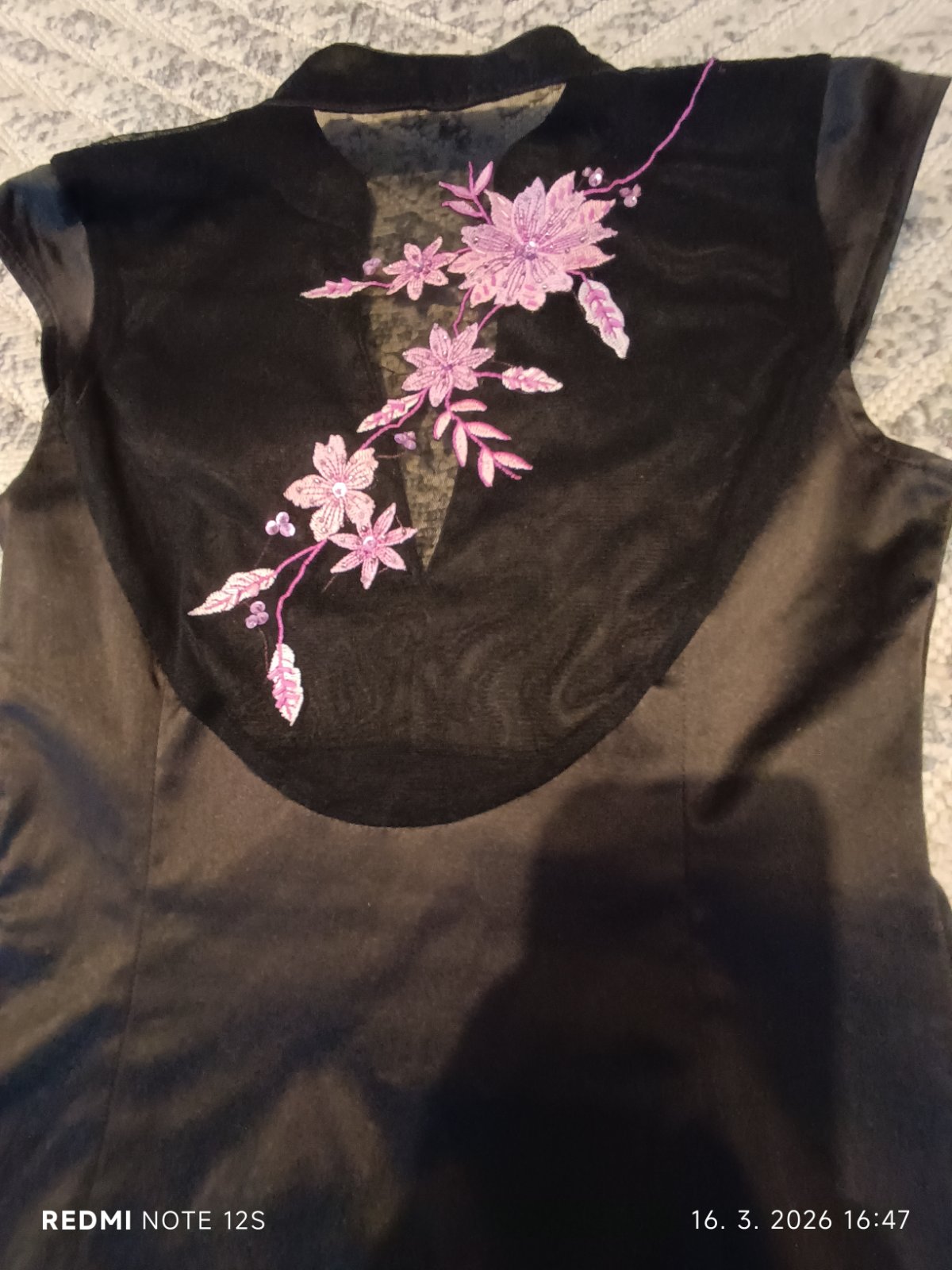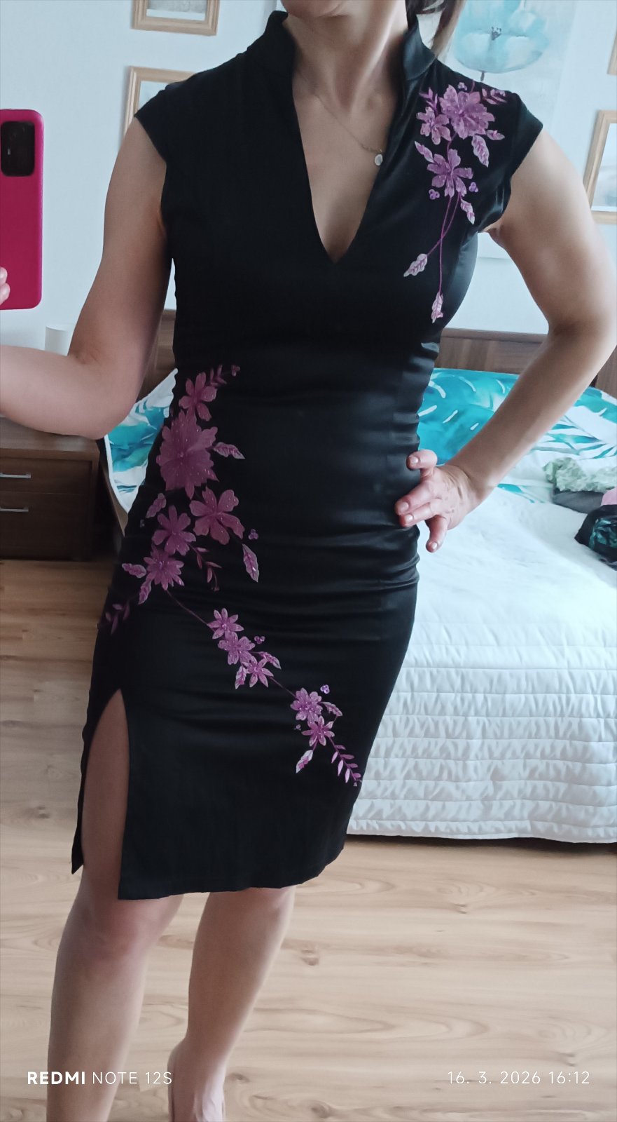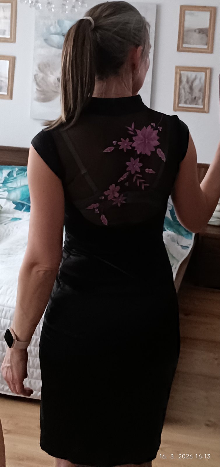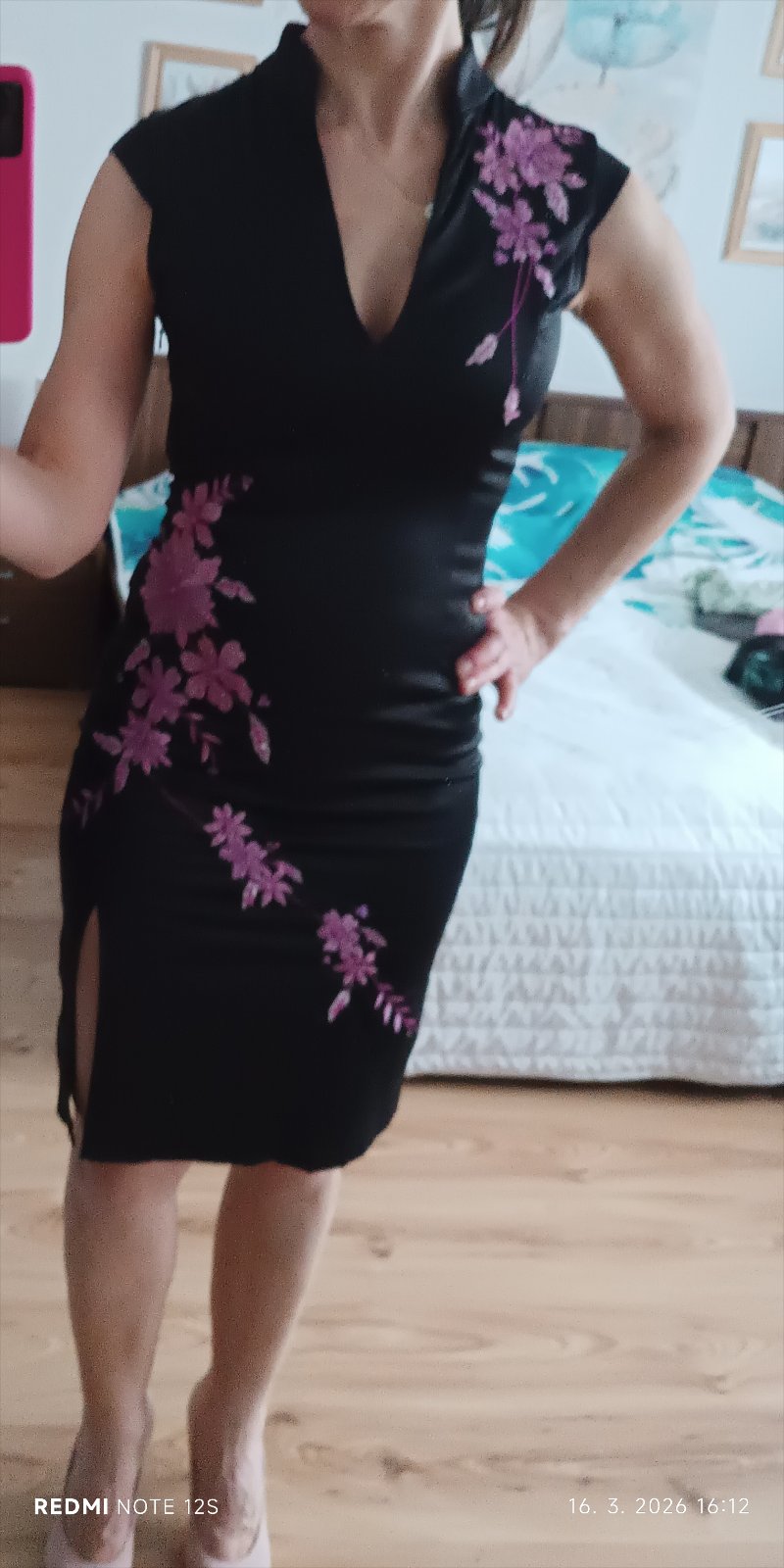 Šaty sú elastické,, vyšívané, s rozparkom, zapínajú sa na zips, vhodné pre S, menšie