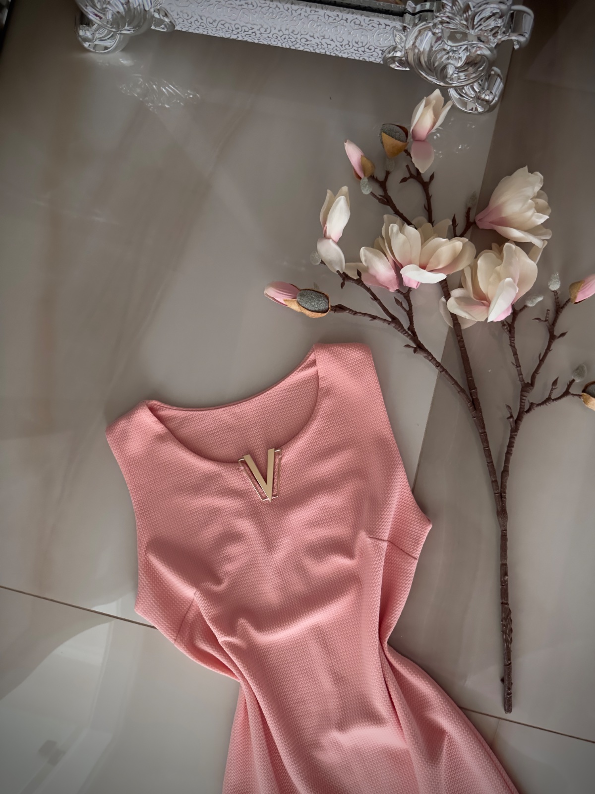 Posuniem krásne, elegantné šaty v jemne broskyňovej farbe, so zlatým detailom. Kvalitný materiál, nepresvitajú. 2x použité, top stav bez chyby.