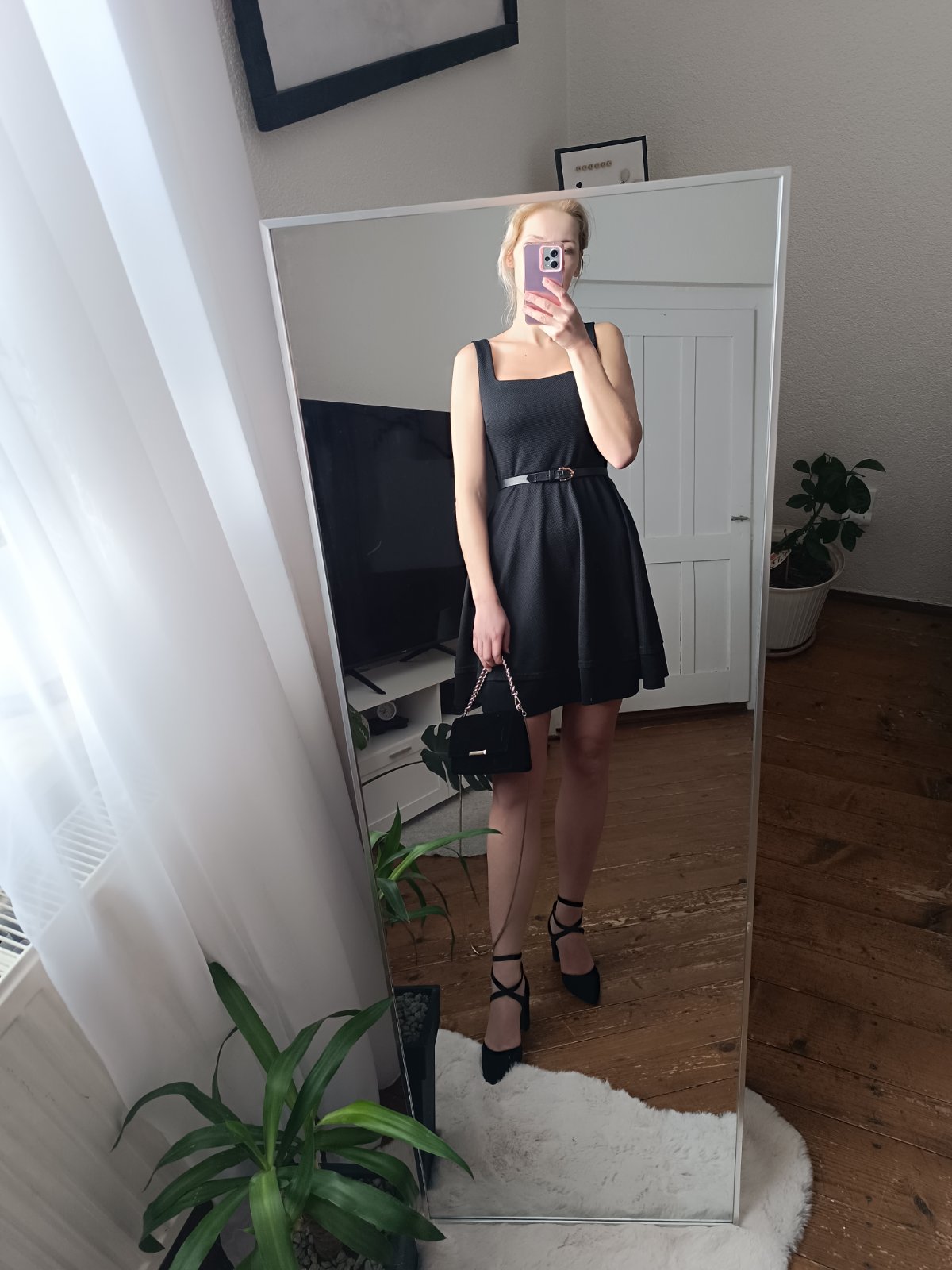 Čierne dámske šaty, pekný stav, sem tam povytiahnutá nitka. Šaty boli predlžované.
