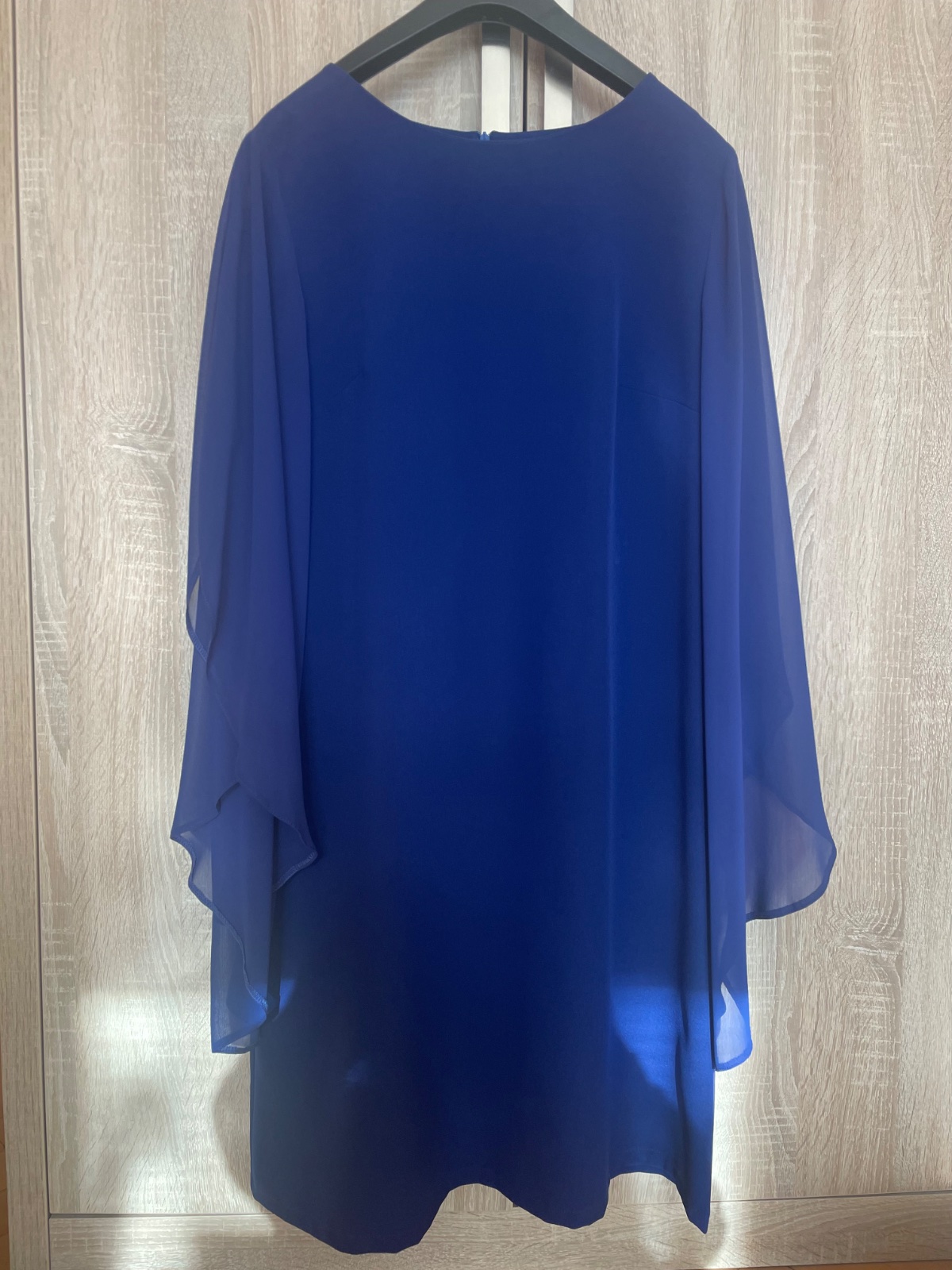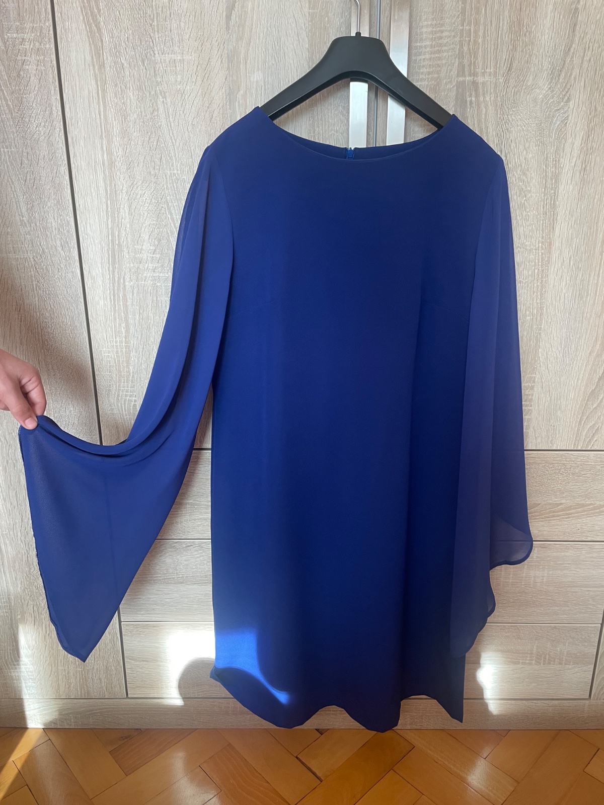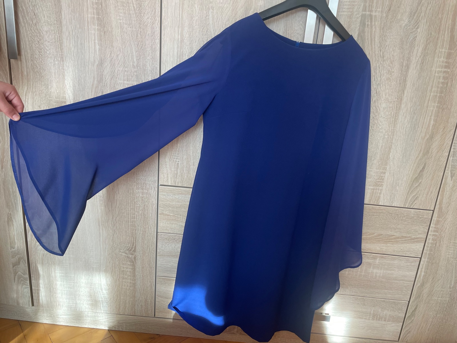 Šaty sú ušité v áčkovom strihu, ktorý výborne sadne na každý typ postavy. Šaty sú navrhnuté ako kombinácia ľahkého a vzdušného šifónu a pevnej kostýmovky. Šifónové rukávy dodávajú šatám éterickosť a šmrnc. Šaty sú vo svojej jednoduchosti krásne a pri vhodných doplnkoch budete vynikať na každej oslave, na ktorú si ich oblečiete.