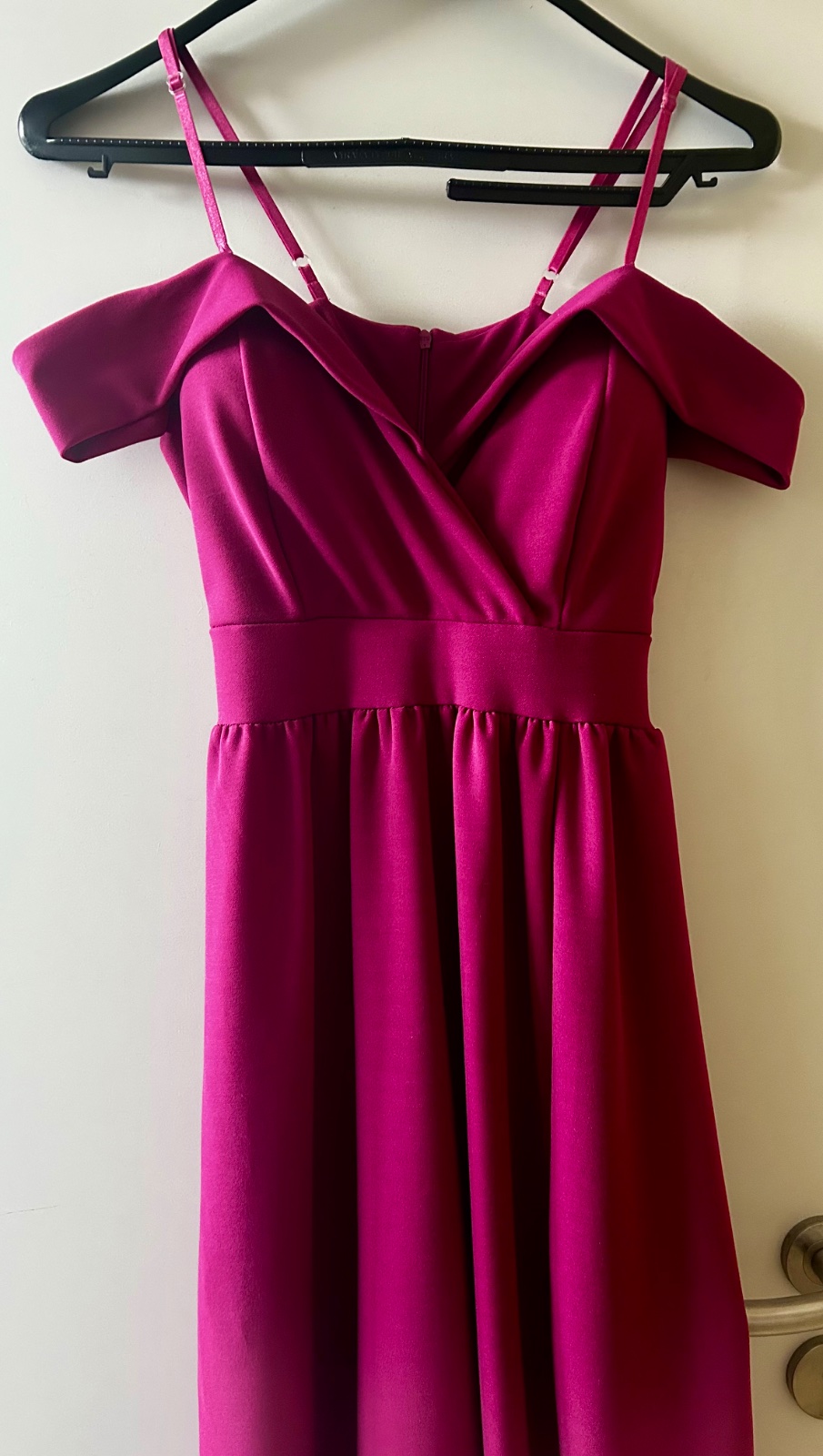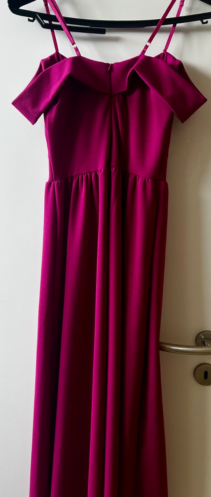 Nádherné saténové šaty. Elastické. Sedia na velkost 36. Moja výška 171cm. Všitá podprsenka aj gelovy pásik takže šaty držia ako majú. Bez opaska. Na predaj aj kabelka v prípade záujmu.