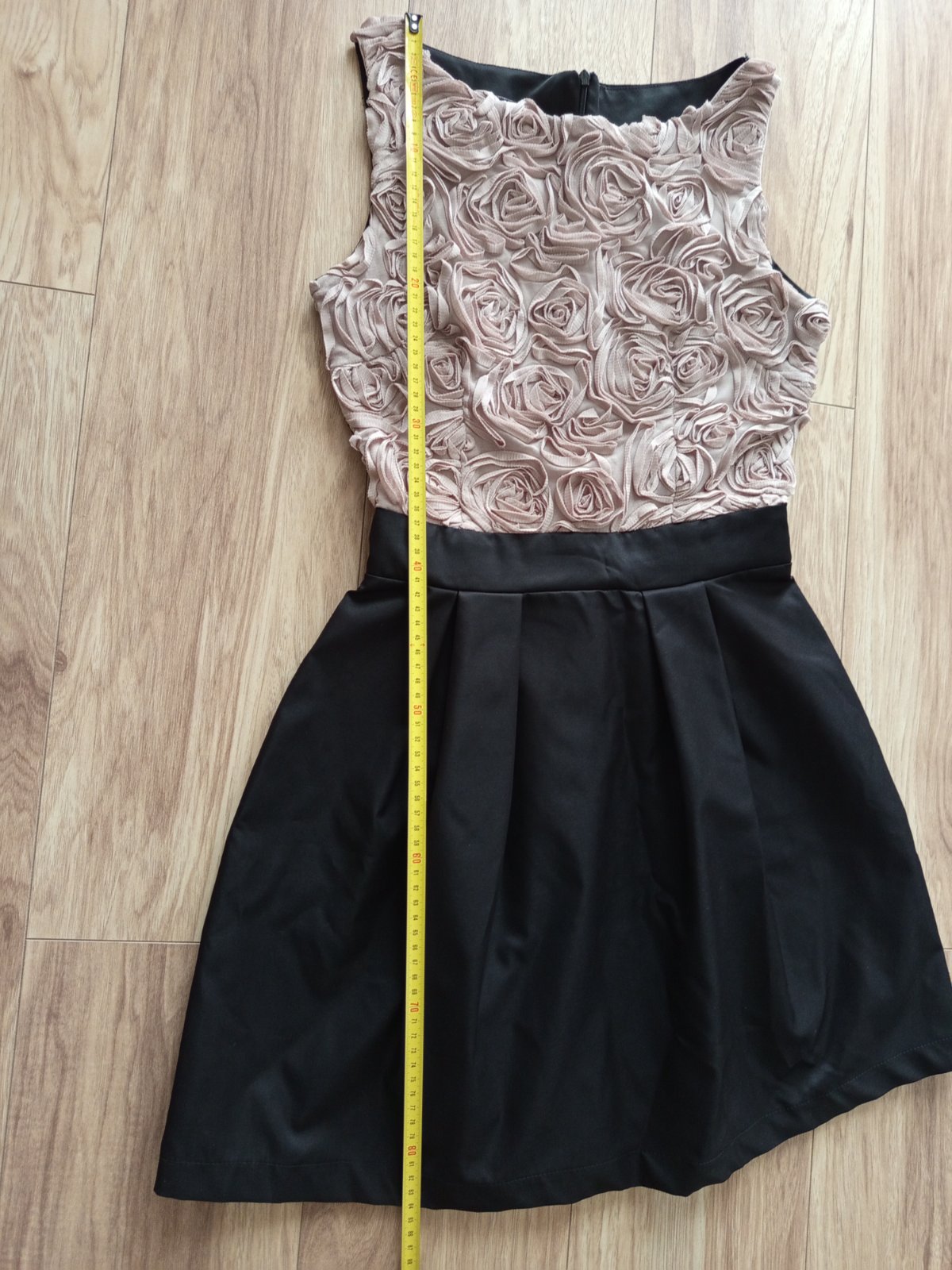Krásne, bez poškodení, zaujímavý výstrih vzadu, ozdobené flitrami, majú vrecká, dĺžka 80, pás 36, prsia 41, odhadujem XS/S
