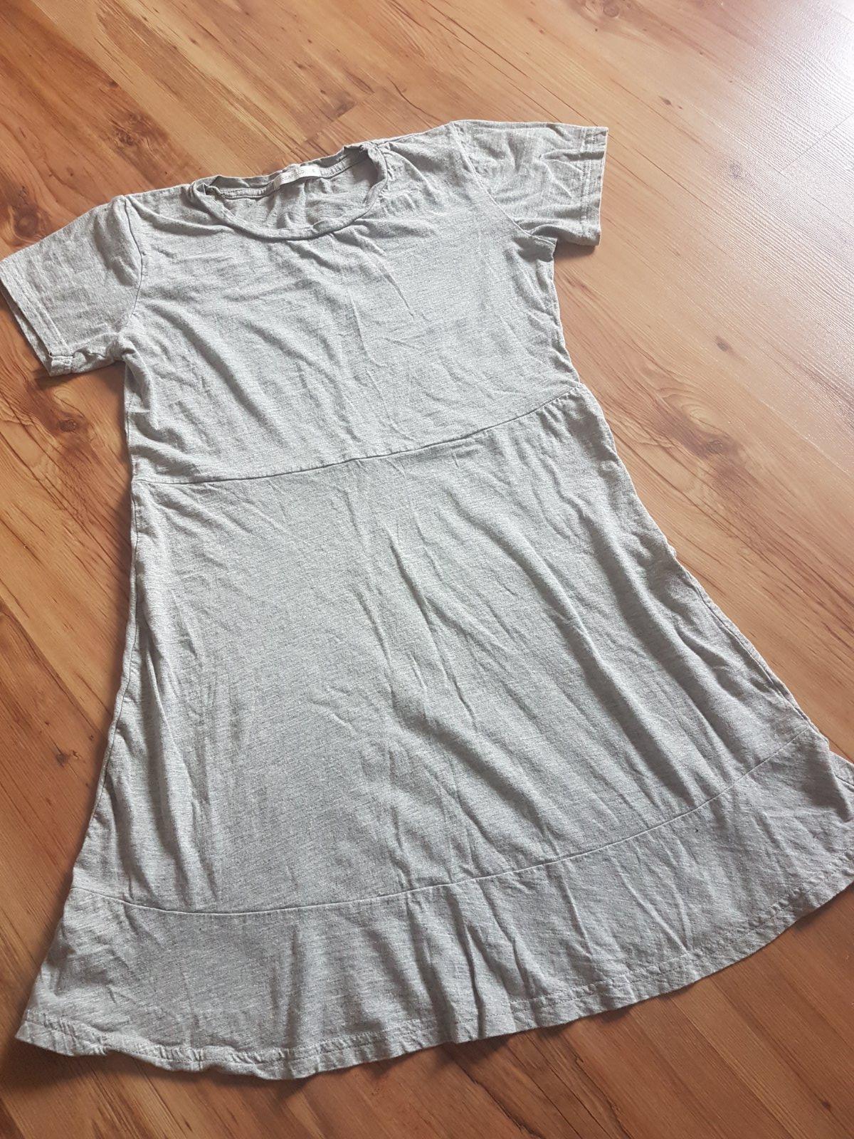 Predám šaty vo velkosti S, saty su v peknom stave pár krát oblečené je to veľmi príjemný ľahký materiál, znacka zara Basic,, dlzka od ramena dolu je 78cm, cena 4,20
