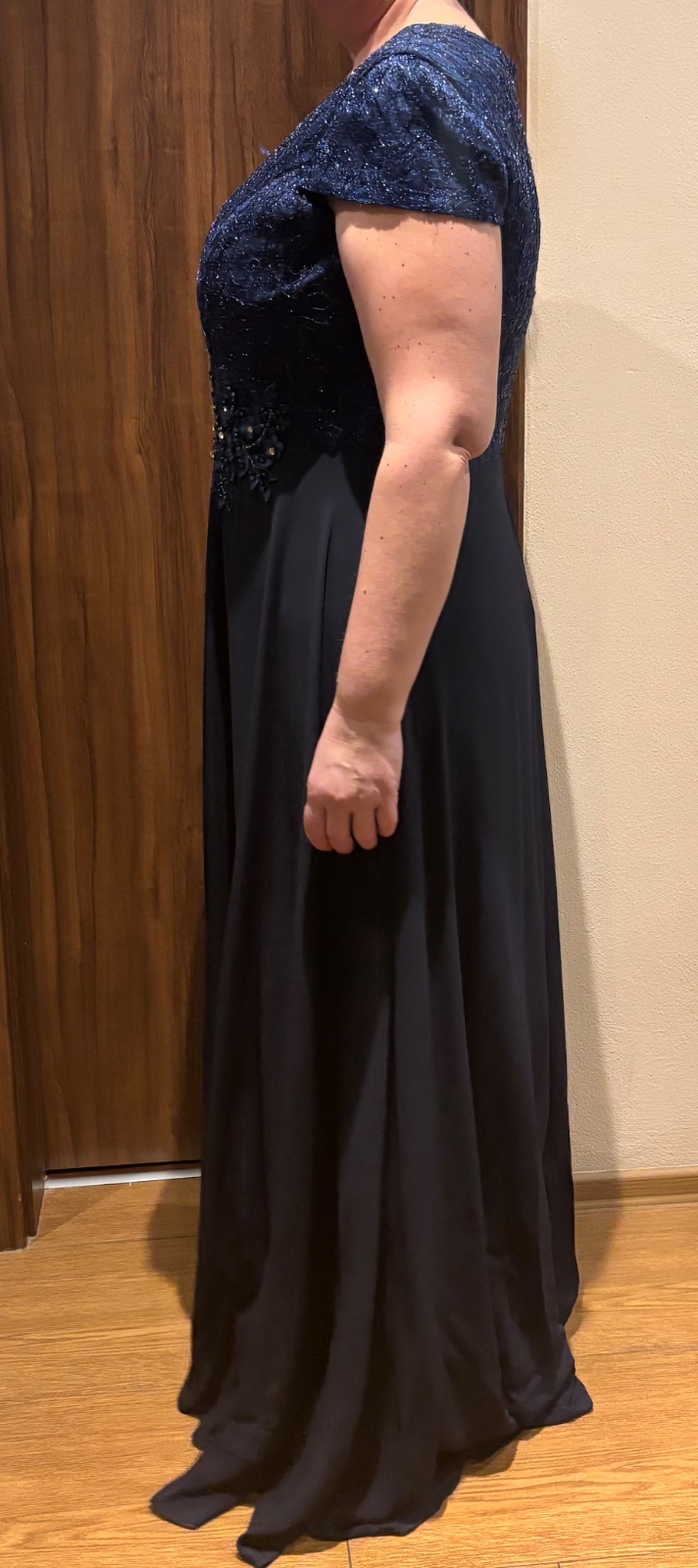 Spoločenské saty veľkosť píše 52 ale ja som vtedy nosila cca 46-48. Kupované v butiku, PC skoro 200€. Schudla som inak by som ich nedala za nič ale vŕšok mi žiadna krajčírka nezuzi. Moja cena 90€. Najlepšie ak by sa dalo osobne a vyskúšať