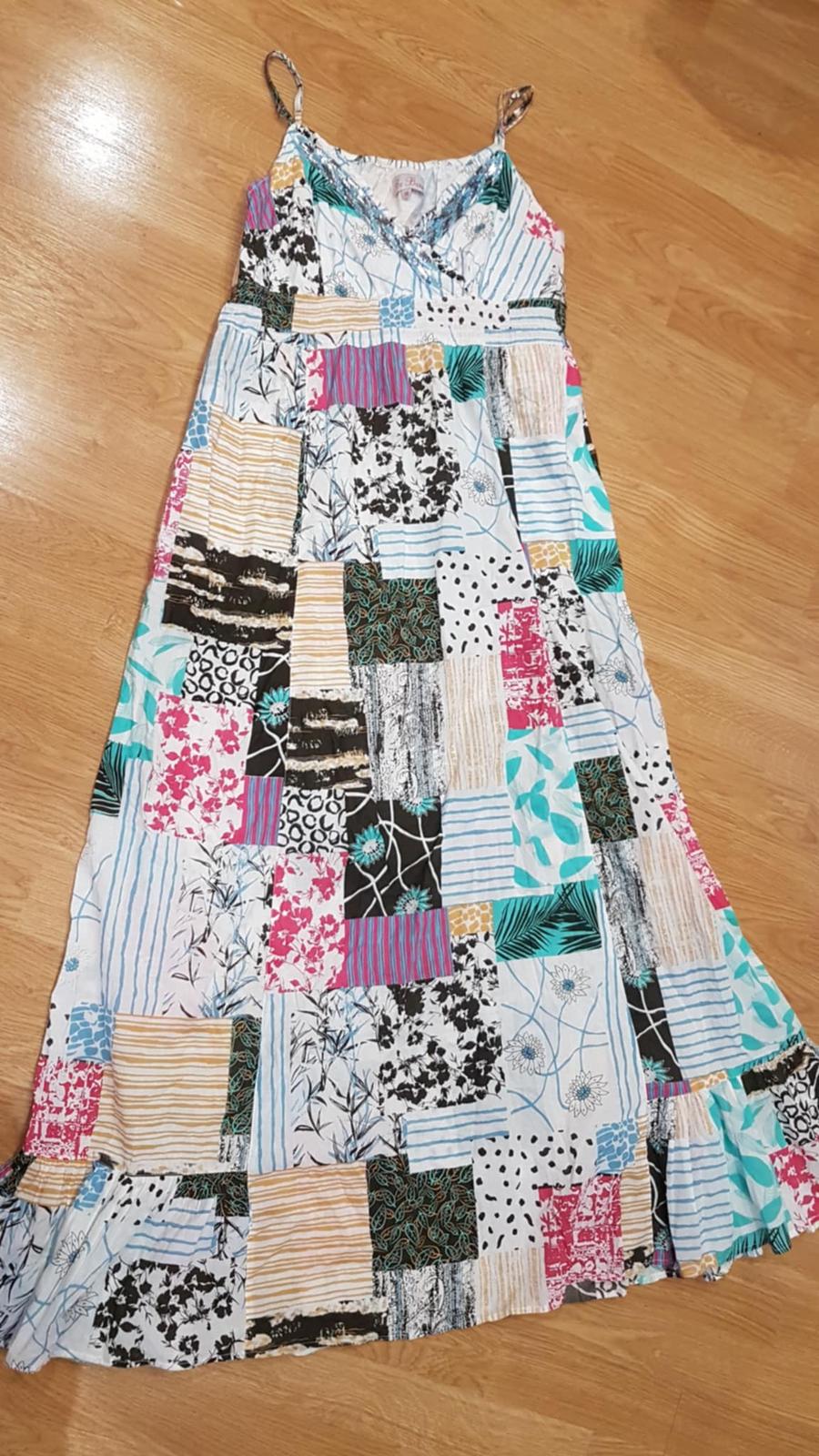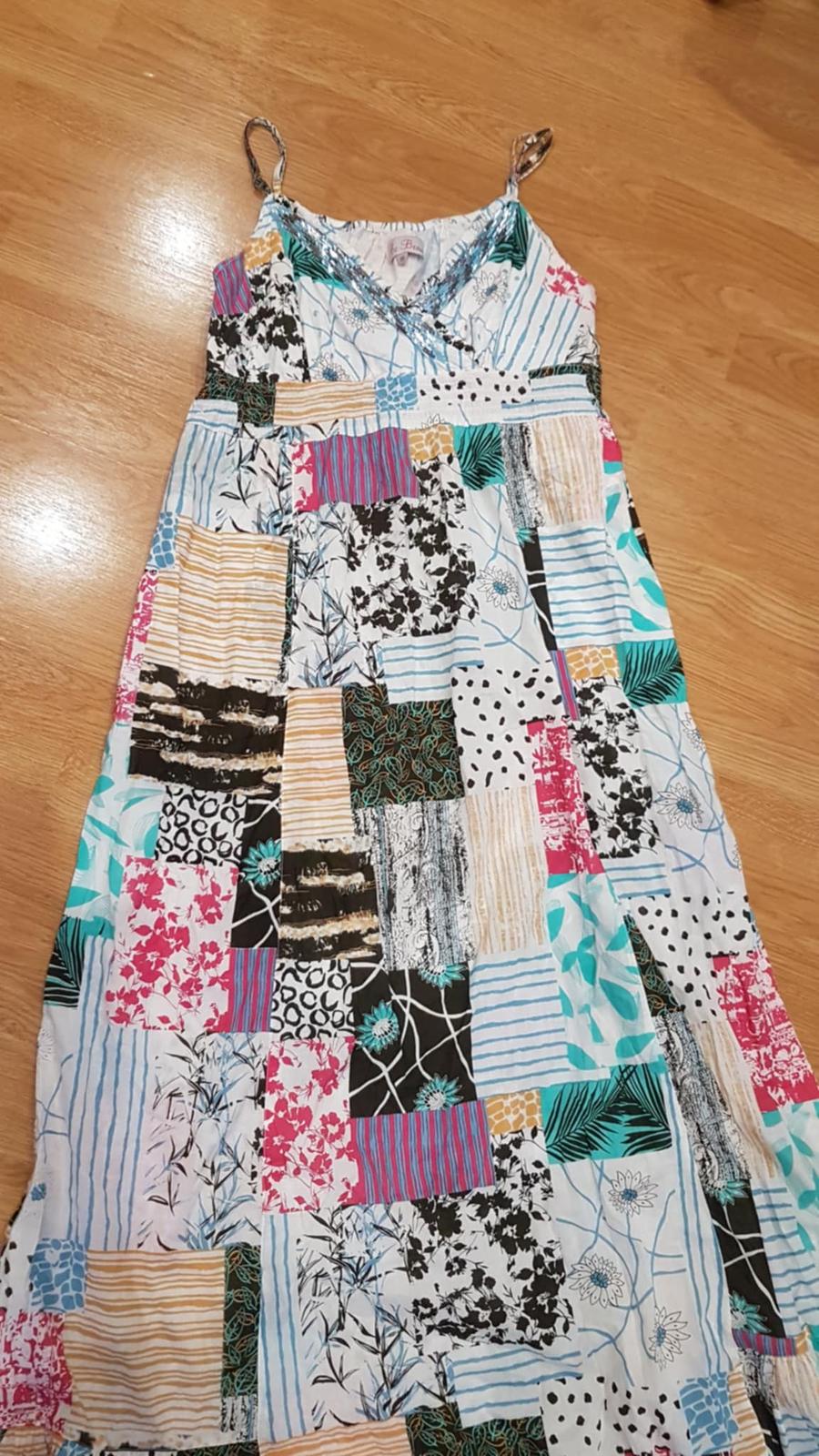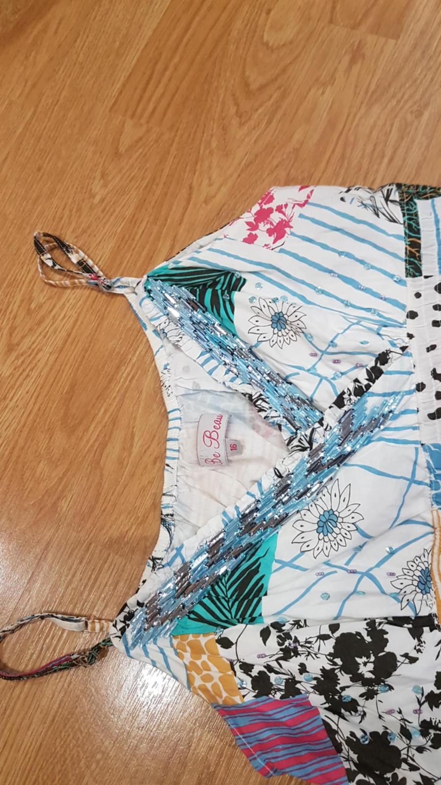 Výborný stav, 100% bavlna, v zadu pri krku je gumička, ramienka sa dajú upravovať na požadovanú dĺžku. Vo výstrihu sú flitre. Pod prsiami je jemná gumička. Bez známok nosenia.
