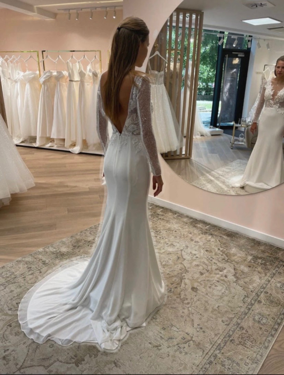 Šaty som mala na sebe jeden deň, sú v perfektnom stave, profesionálne chemicky vyčistené a pripravené pre ďalšiu nevestu.