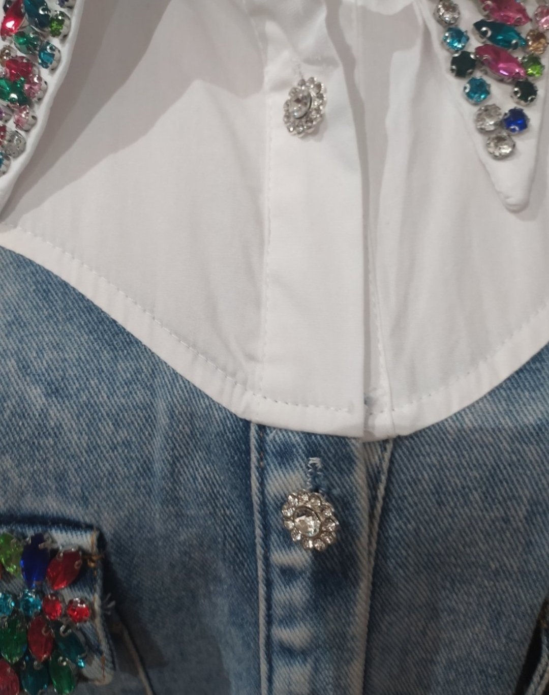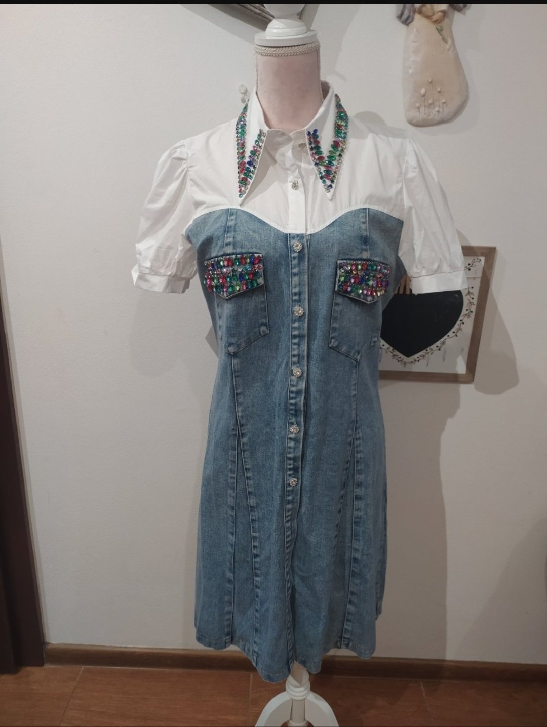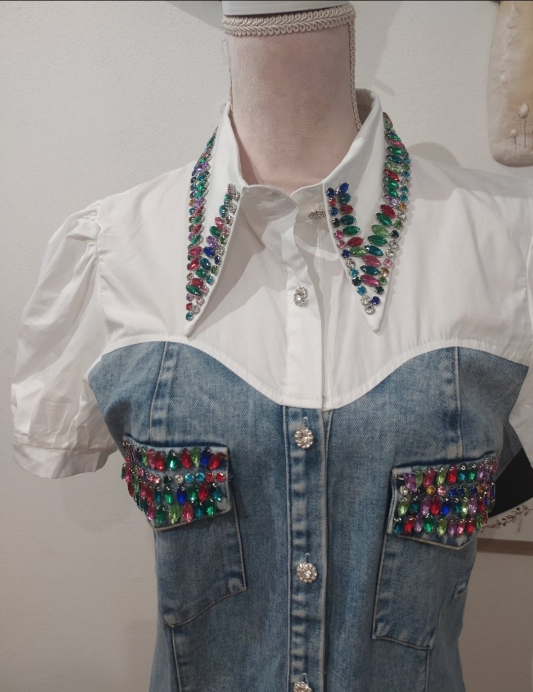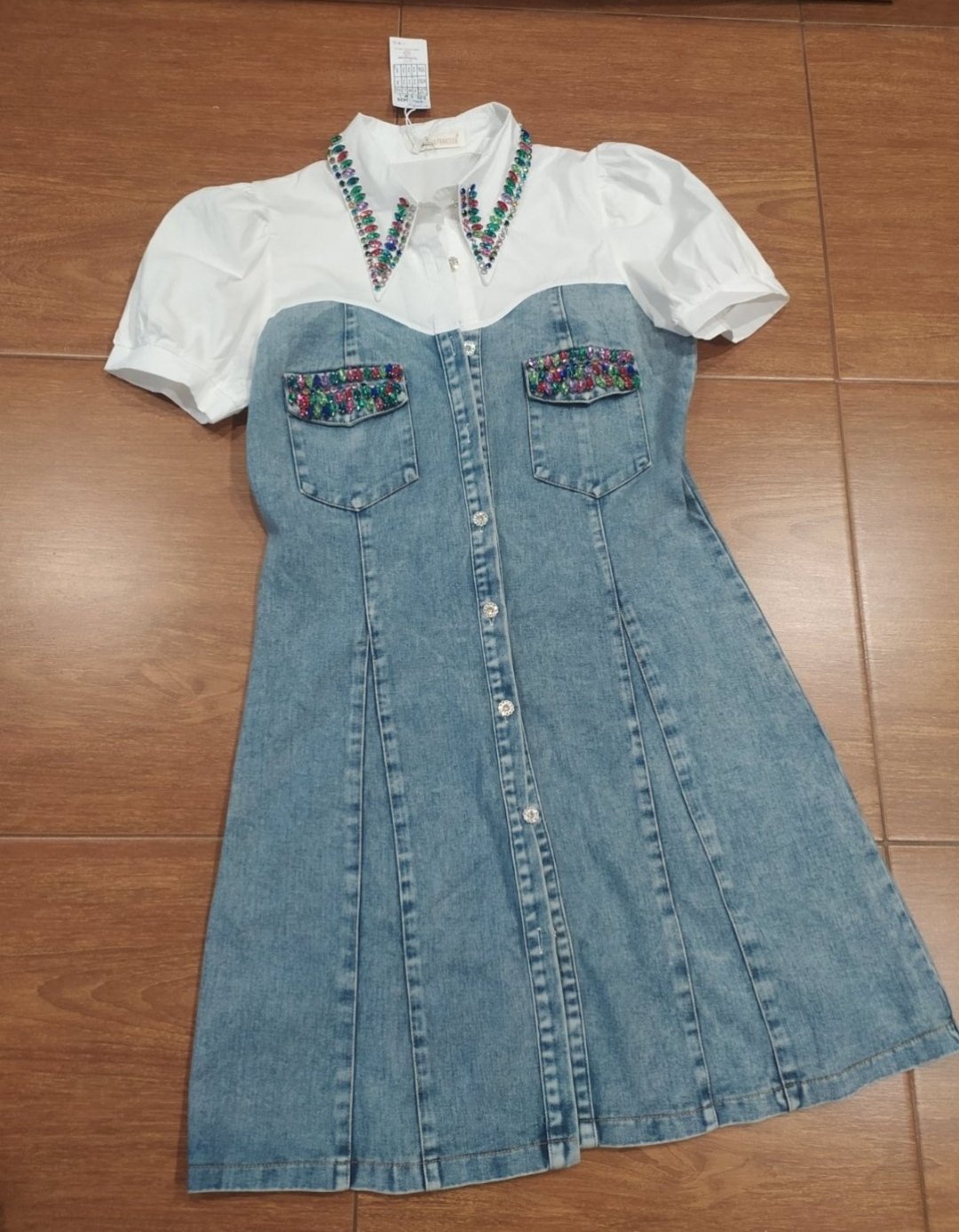 Luxusné riflové šaty ,zdobené farebnými kamienkami,jemne elastické