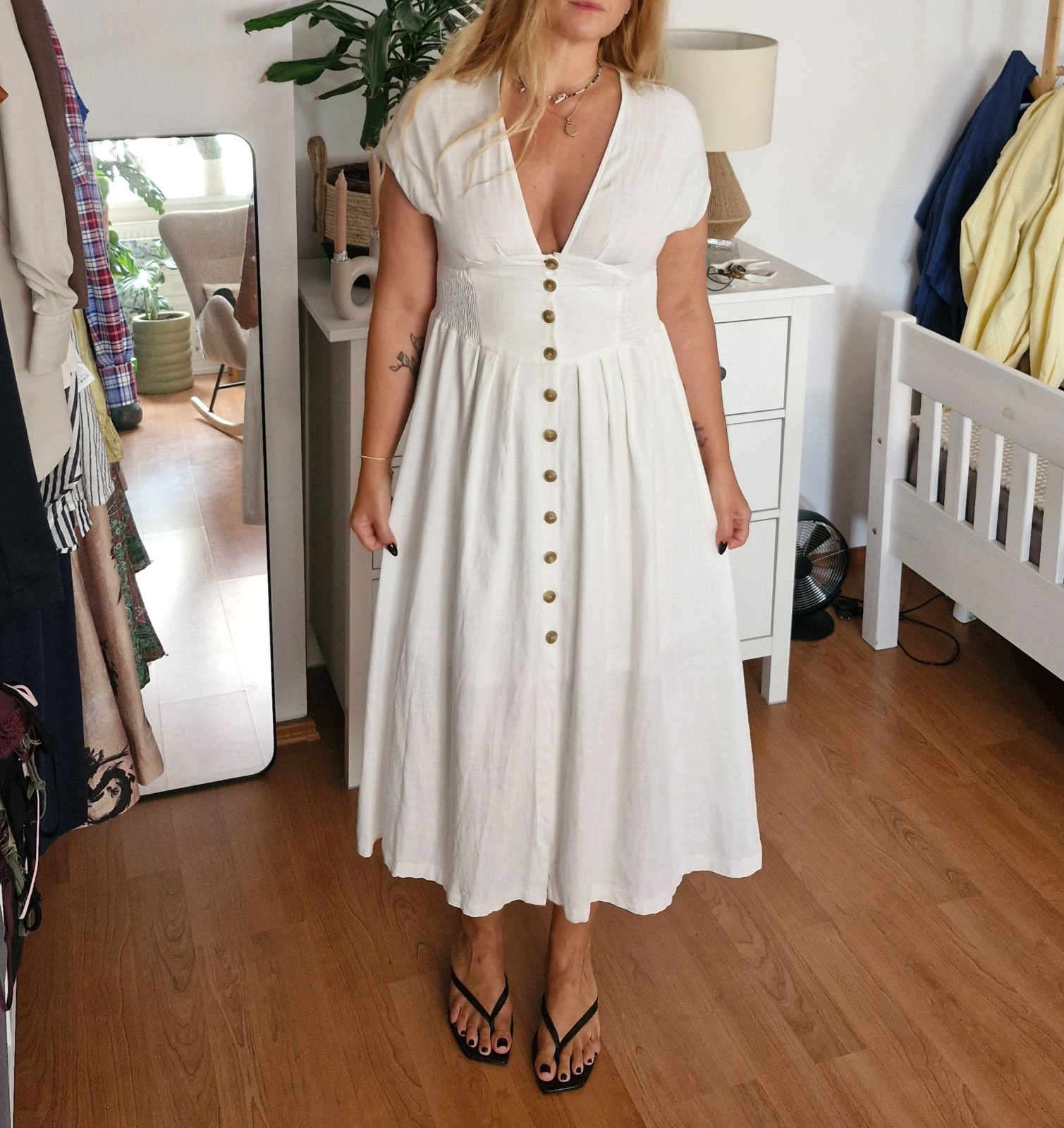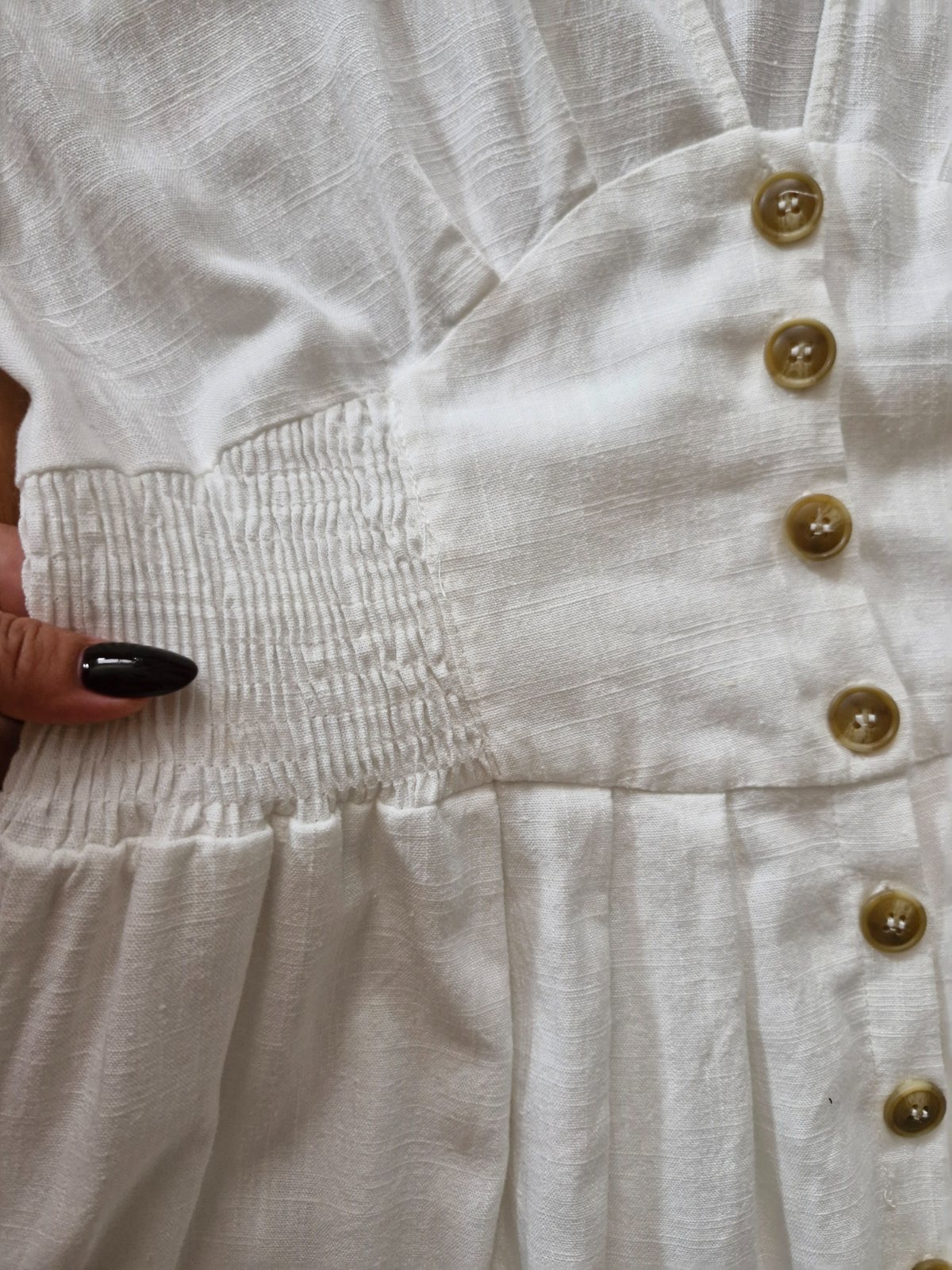 55% ľan, 45% bavlna, krasne prepracovane, c pase gumickove presitie- pekne zvyrazni driek a prisposobi sa. Velksot pisana M/L