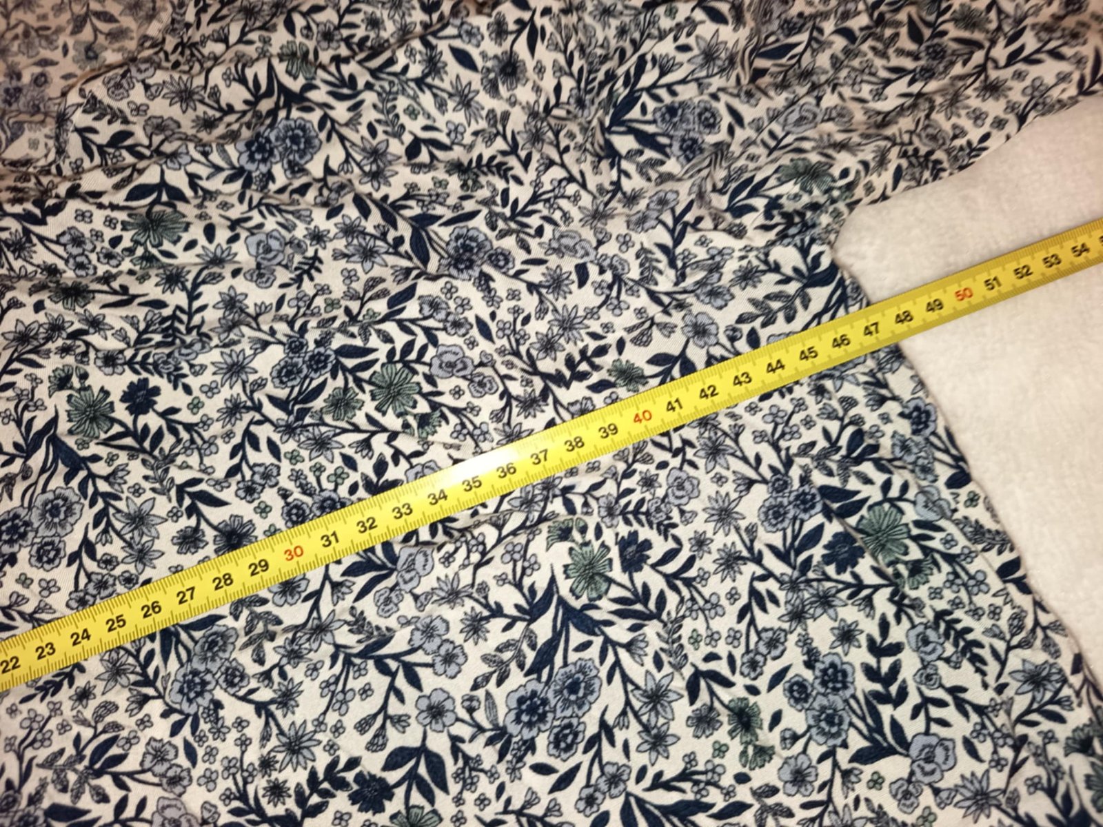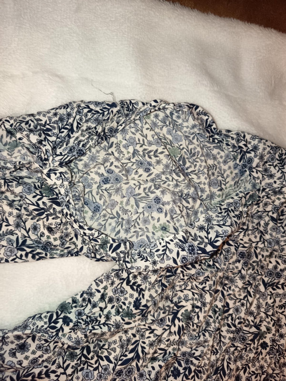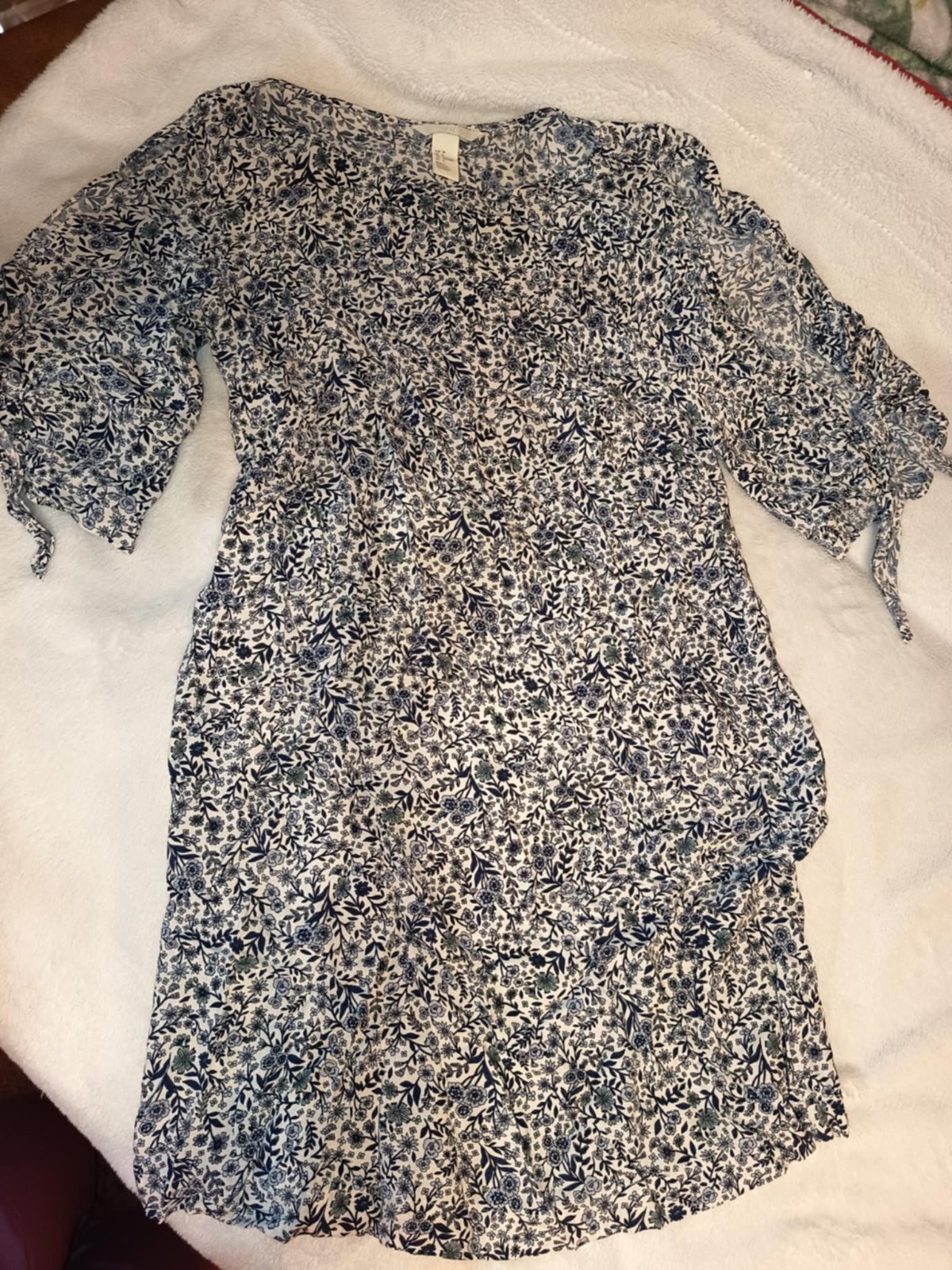 Modrobiele kvetované šaty. Lahké, letne. Na rukavoch razporky.