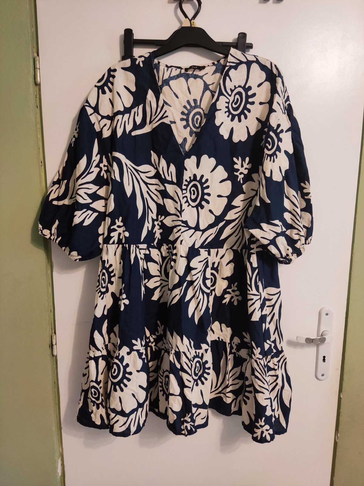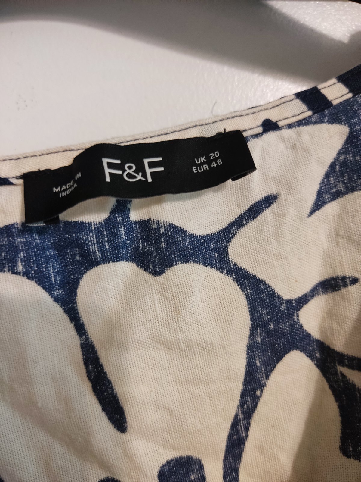 Top stav Pohodlné letné bavlnené dlhé šaty s 3/4 rukávom Zakúpené v F&F, uvedená veľkosť 48 100% bavlna Dĺžka: 135 cm Šírka pod pazuchami: 58 cm Pás: 57 cm Boky: 72 cm