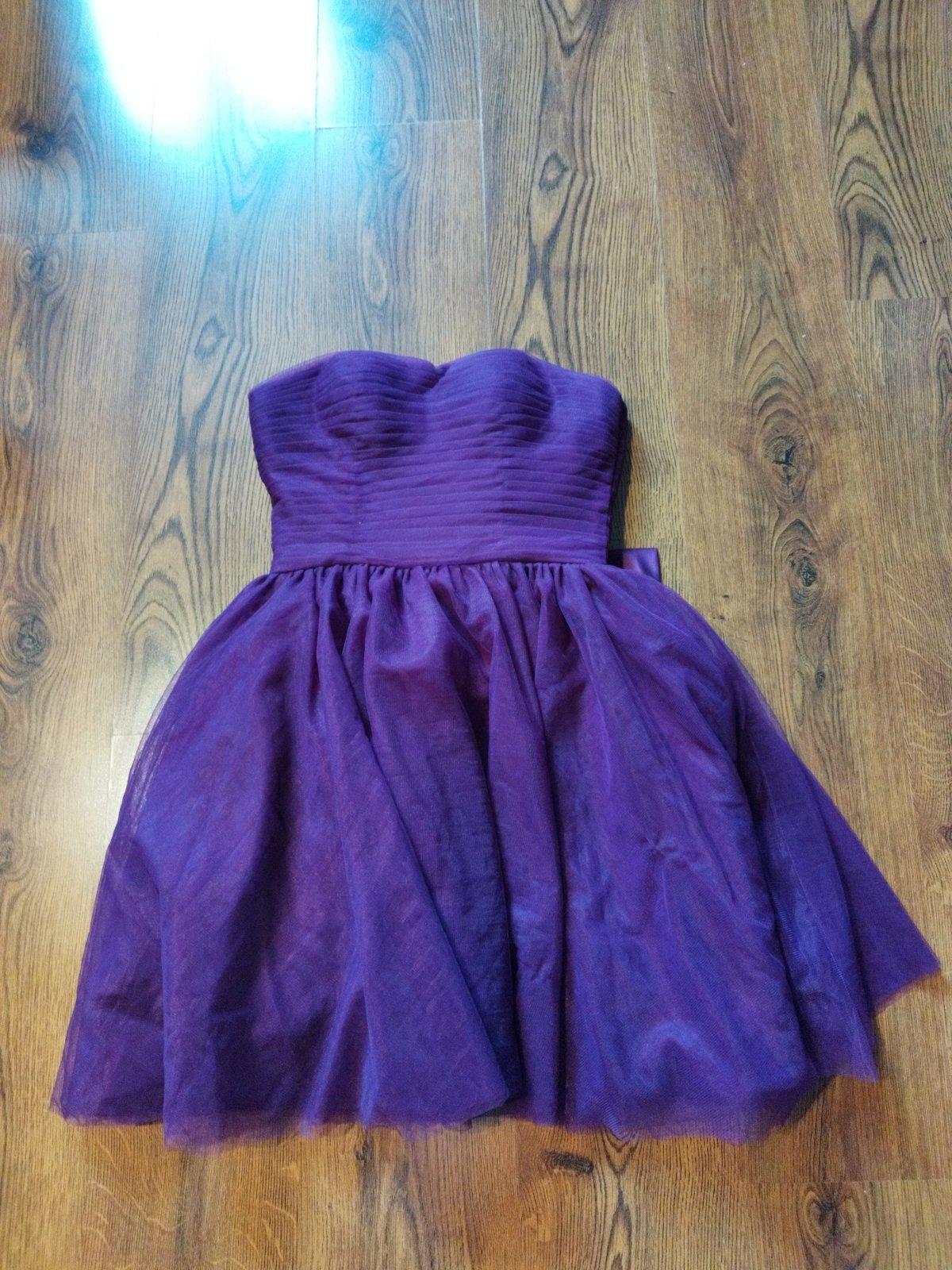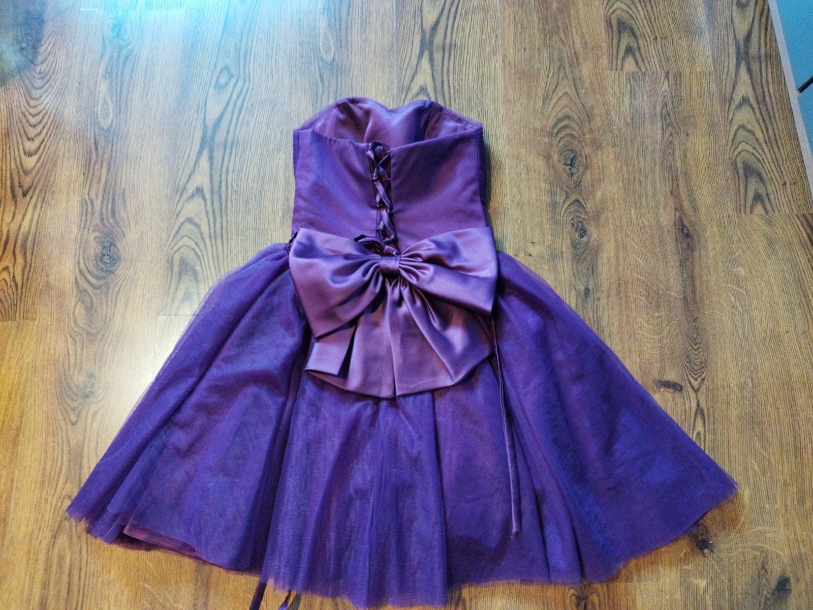 Predam spolocenske fialove satenove saty z boku zips S-ko... v zadu dlhe z predu kratsie oblecene na plese