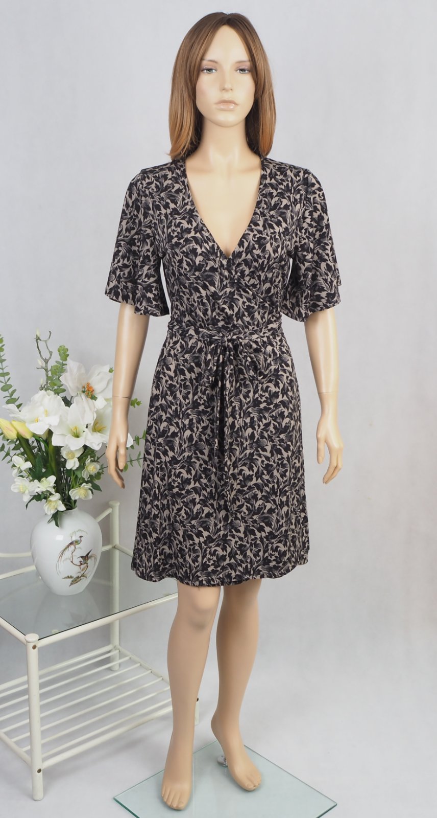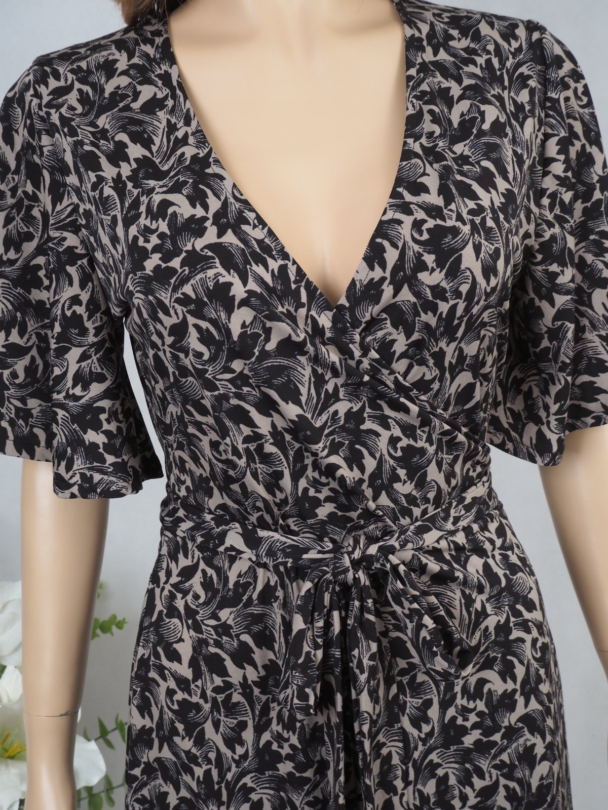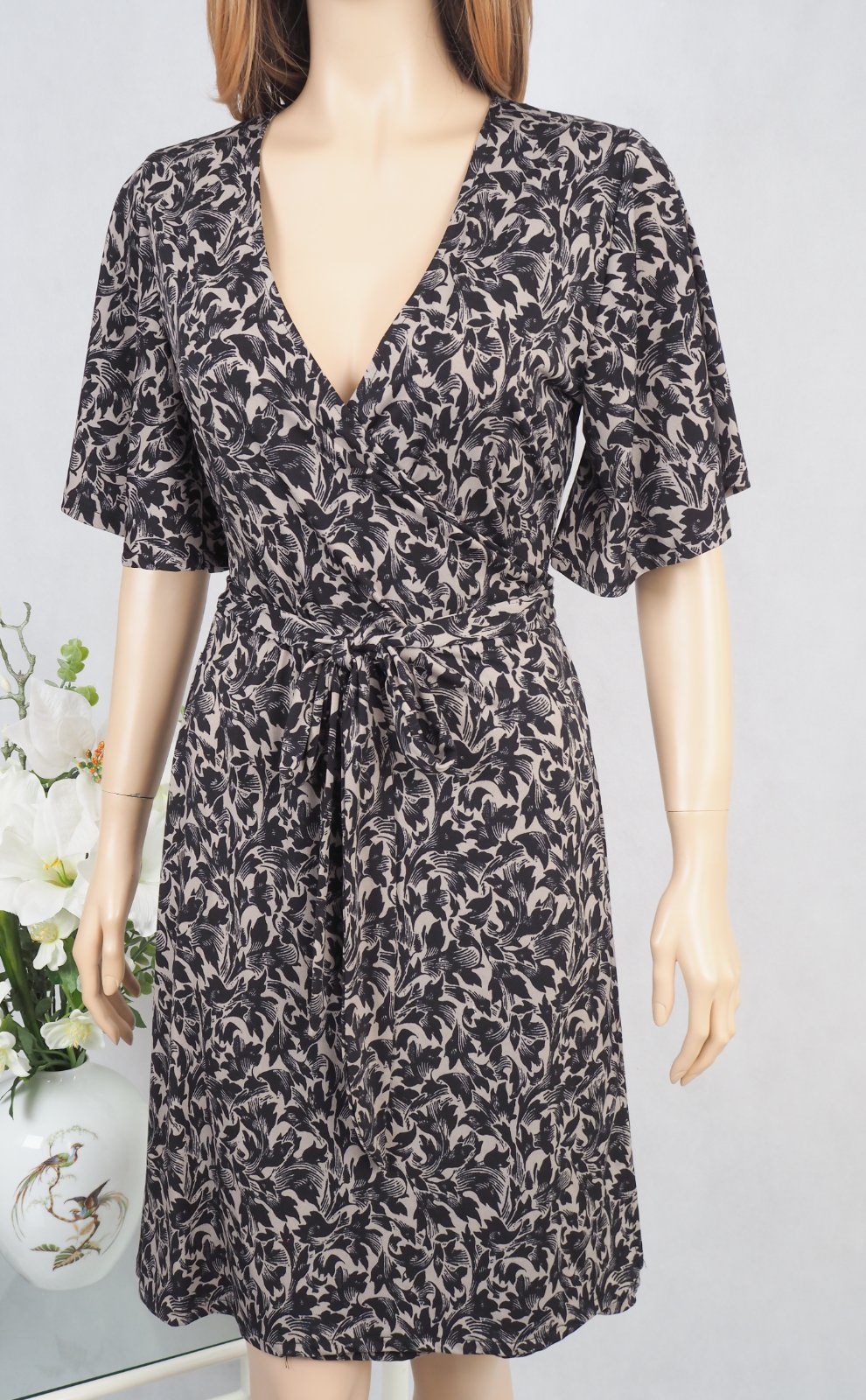 Luxusné letné zavinovacie šaty čierno-béžovej farby, materiál 95% polyester, 5% elastan, super stav.