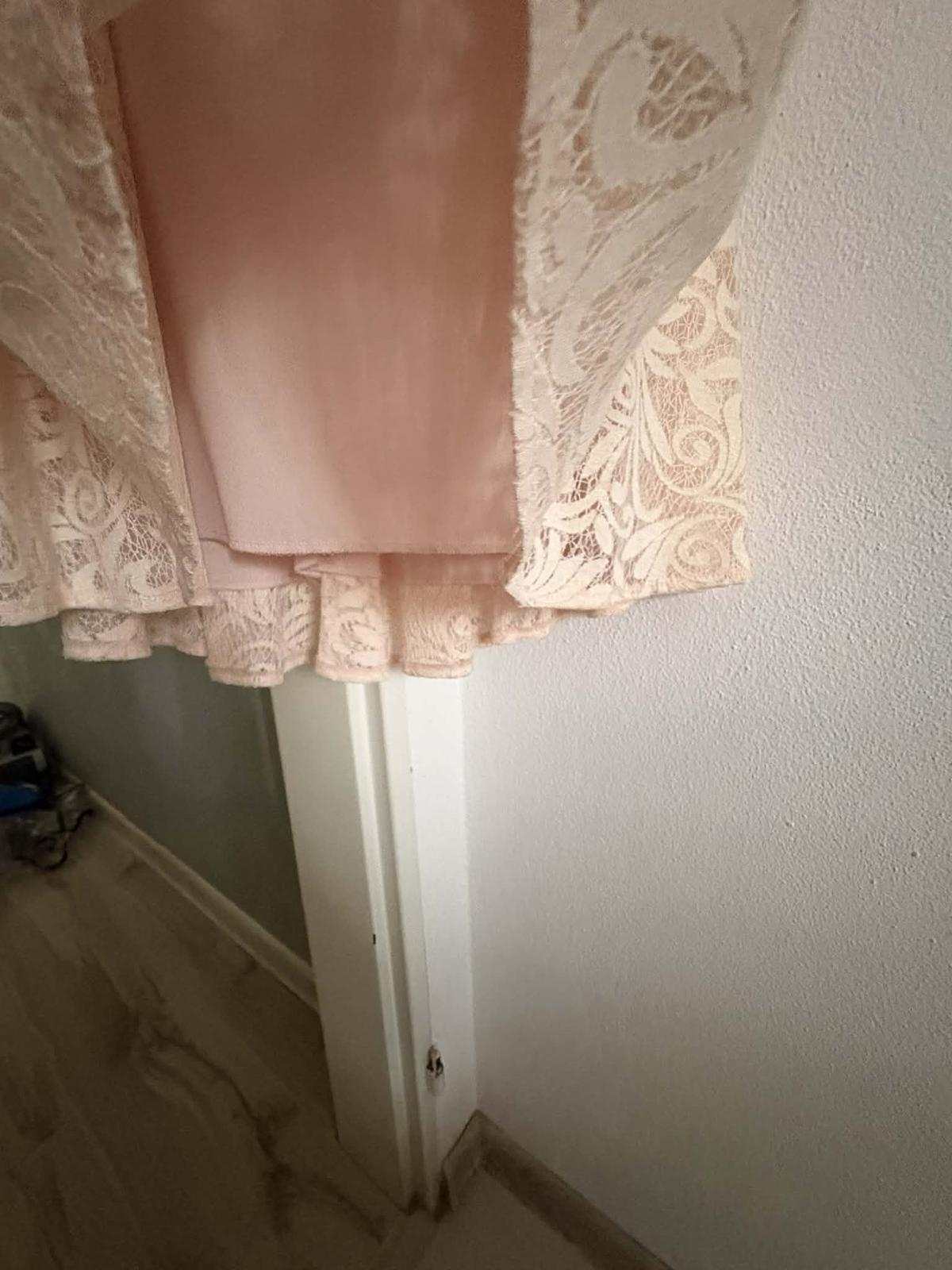 V zadu trošku predĺžené ako v predu, zapínanie zo zadu krytím zipsom.Cipkovane,podsite