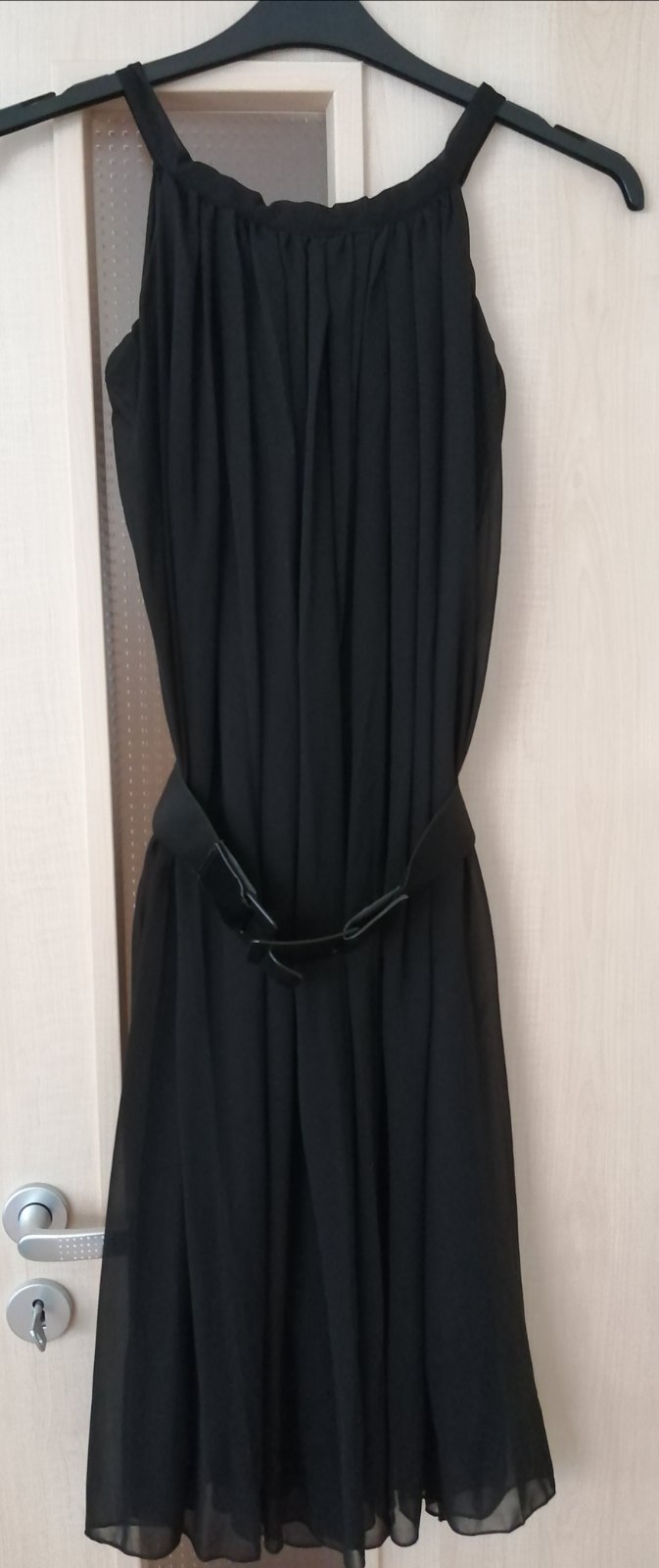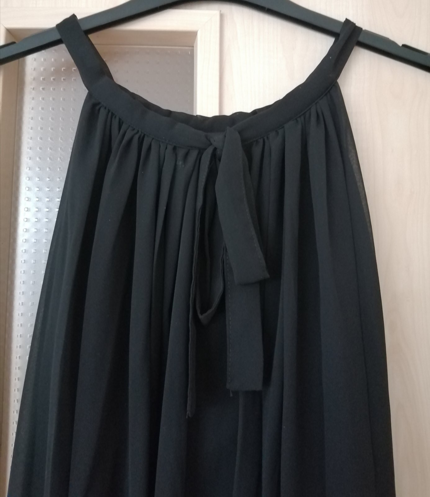Predám 1x oblečené dámske šaty, tops tav, plisovaný šifónový vrch, zaväzovanie okolo krku, podšité, dĺžka spodničky 90 cm, vrchná časť cca 105 cm, popod pazuchy do max 2x50cm. Možno nosiť s opaskom aj bez, fotené na veľkosti S, inak bez rozmerov, kupované ako univerzálna veľkosť.