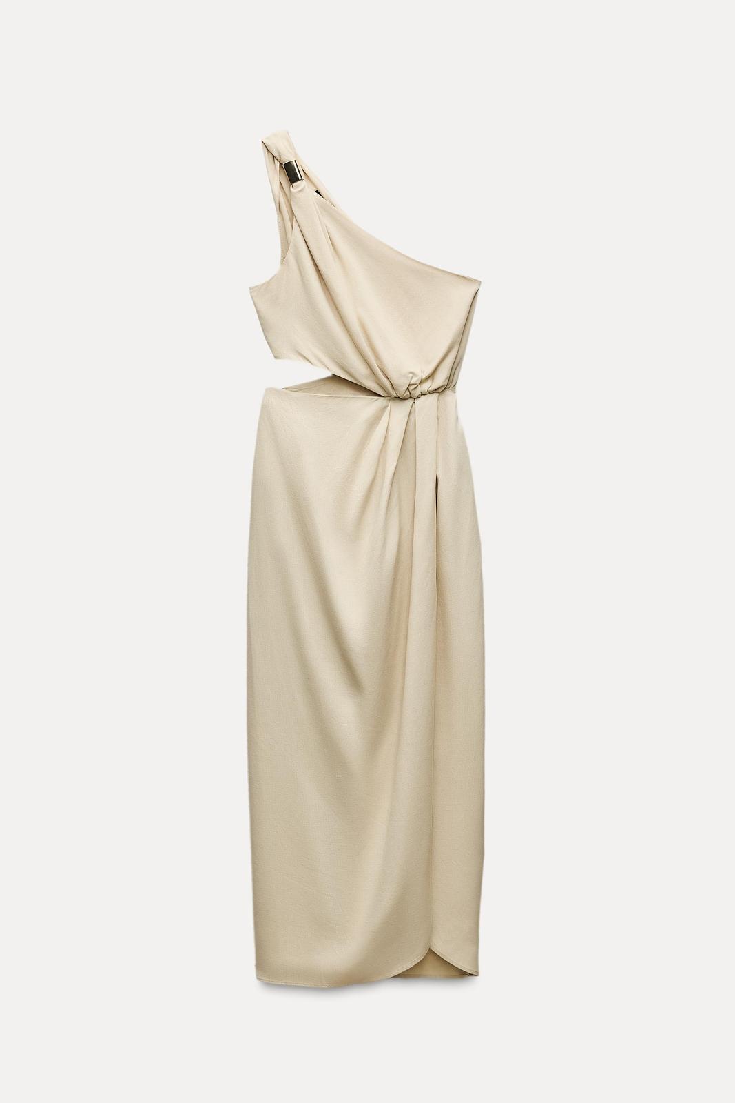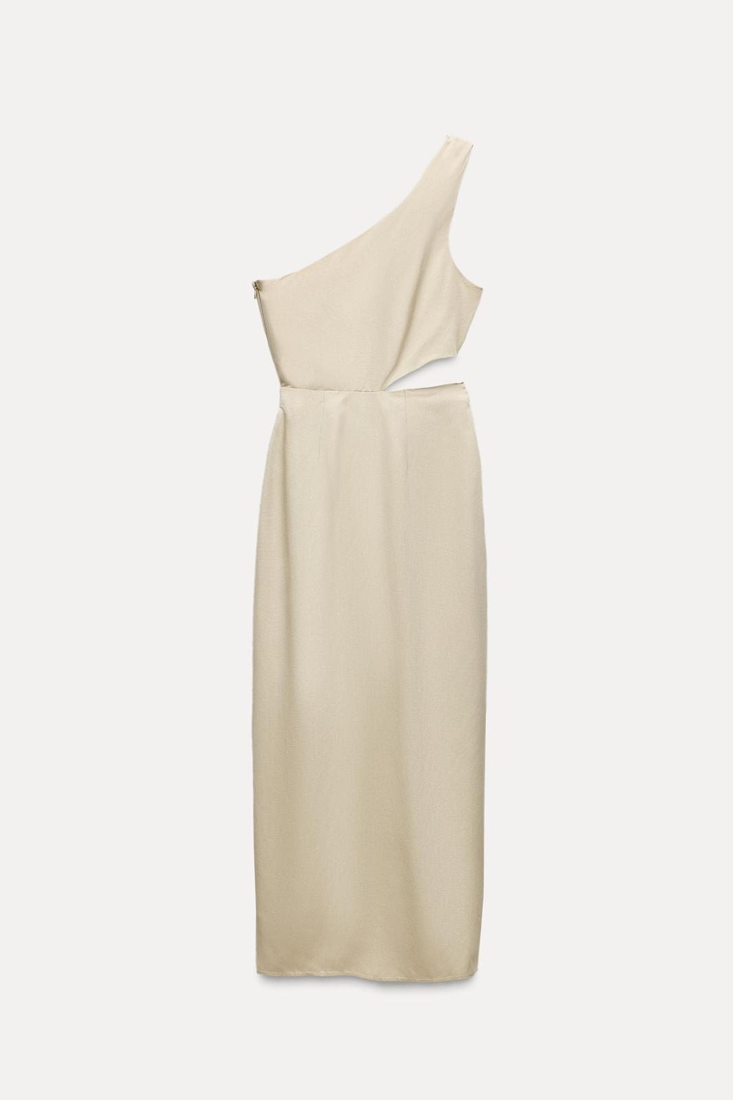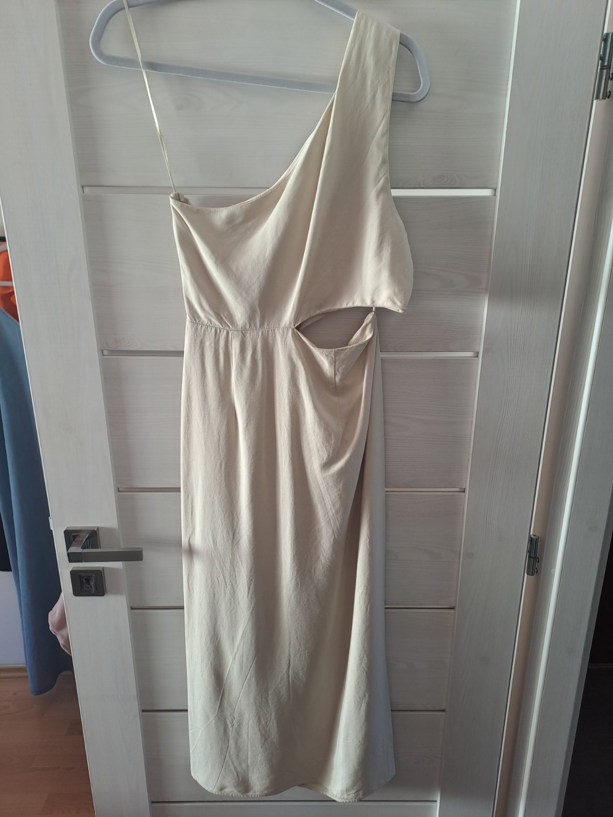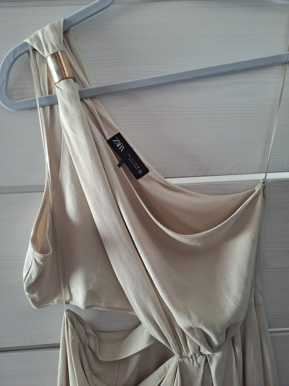 Predám krásne midi béžové letné ĺanové šaty s výstrihmi, vel.Lzn.ZARA,