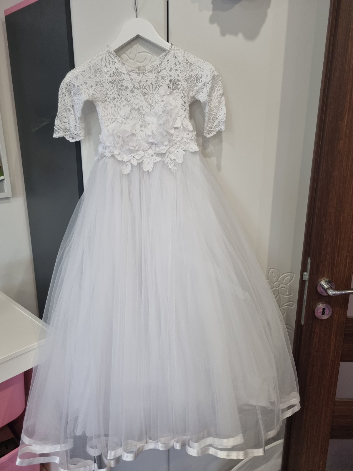Krasne nove saty vhodne na 1.sv.prijimanie, vzadu sa stiahnu maslou, takze sa krasne prisposobia...