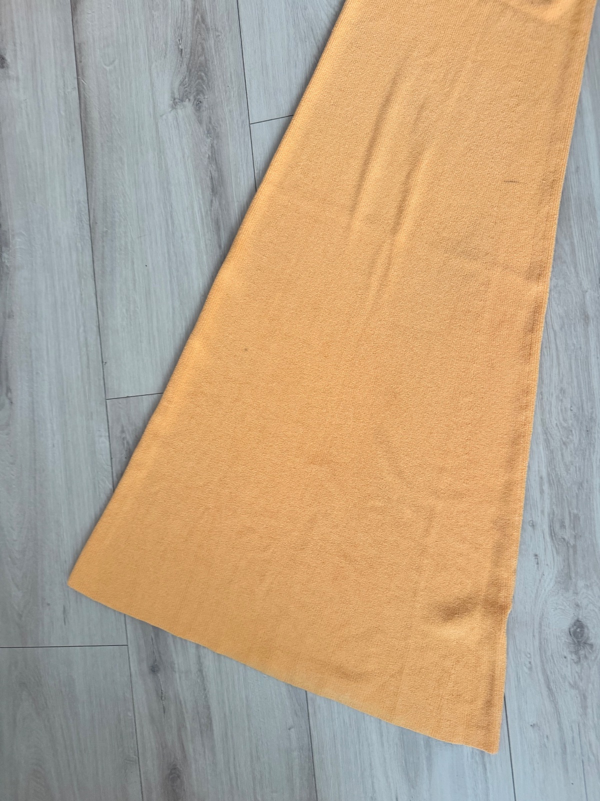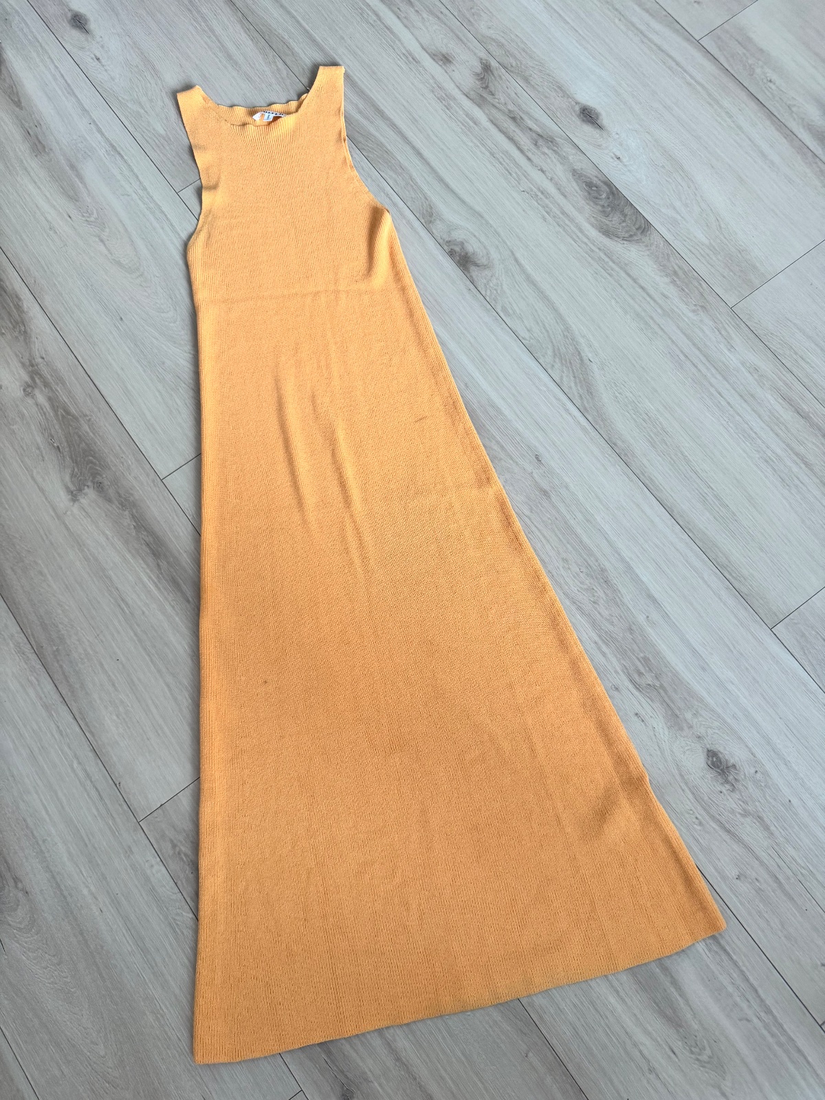 Letne šaty dlhe krasny lahky letny material a ziariva syta oranzova farba nebosene vzadu krasny vystrih na chrbte dole volaniky velkost S