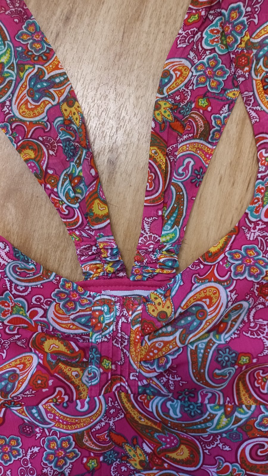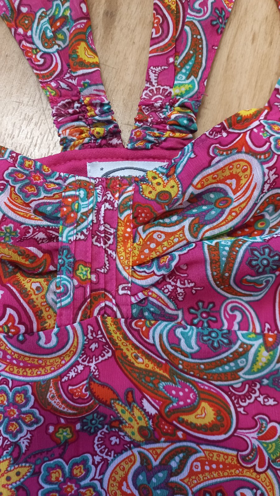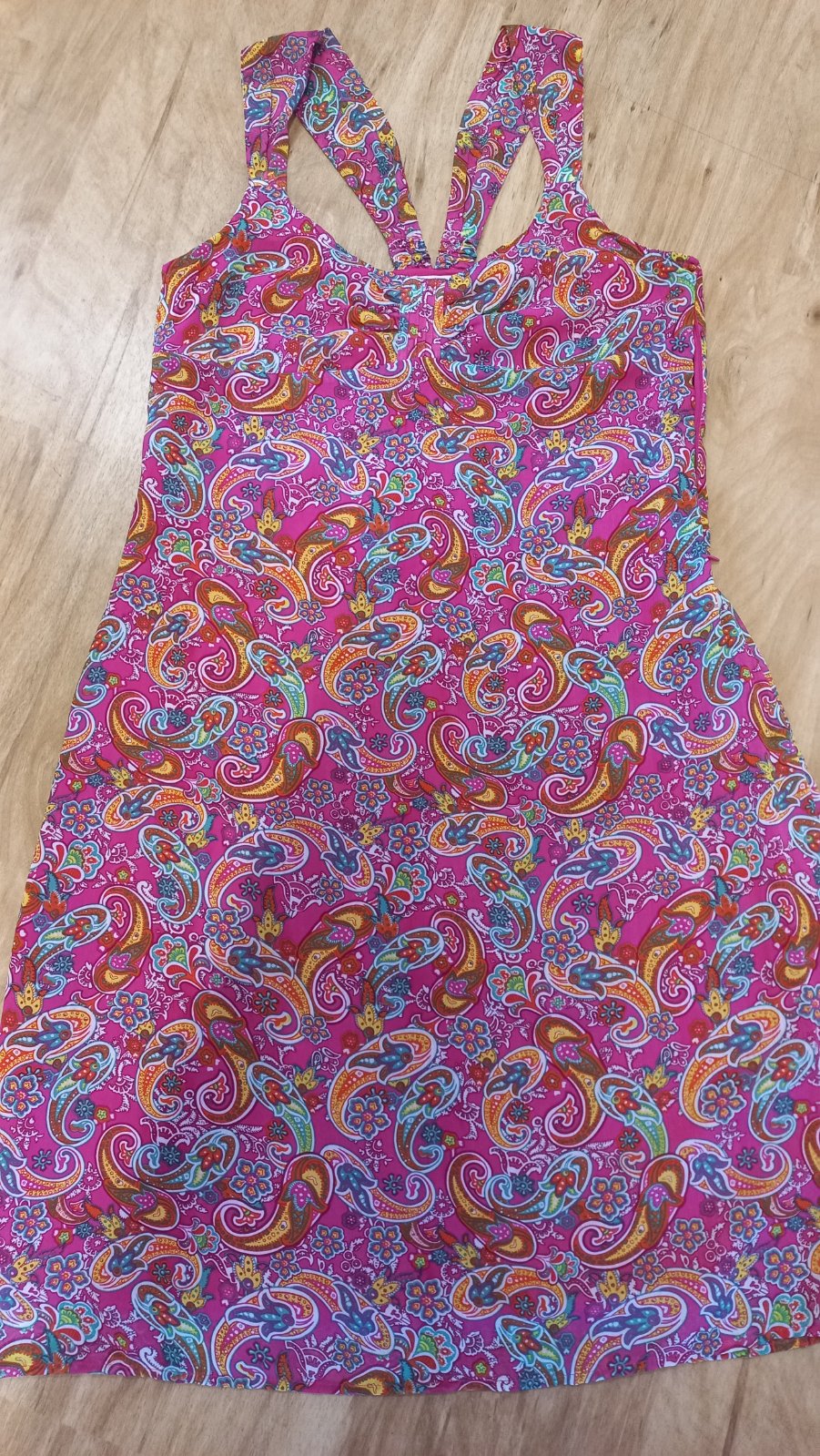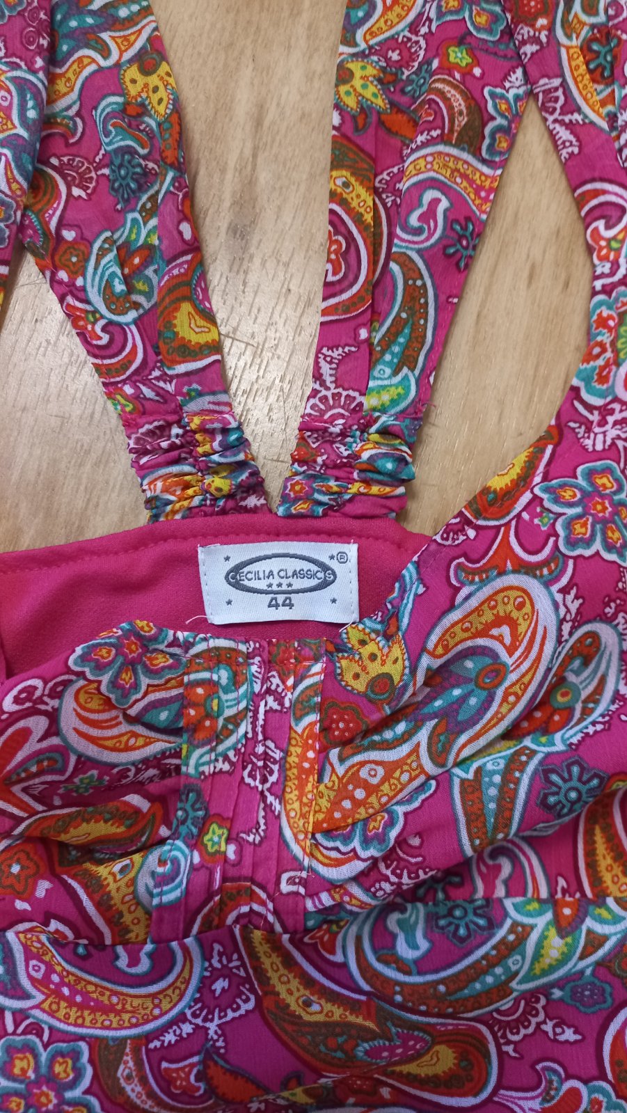Pekné letné šaty, prsia 47 cm, dlžka 107 cm. . Veľkosť na štítku 44. Tak na L / XL velkost. Rozšírené. Šaty sú podšité. Veľmi dobrý padavý, ĺahučký materiál. Na boku zips