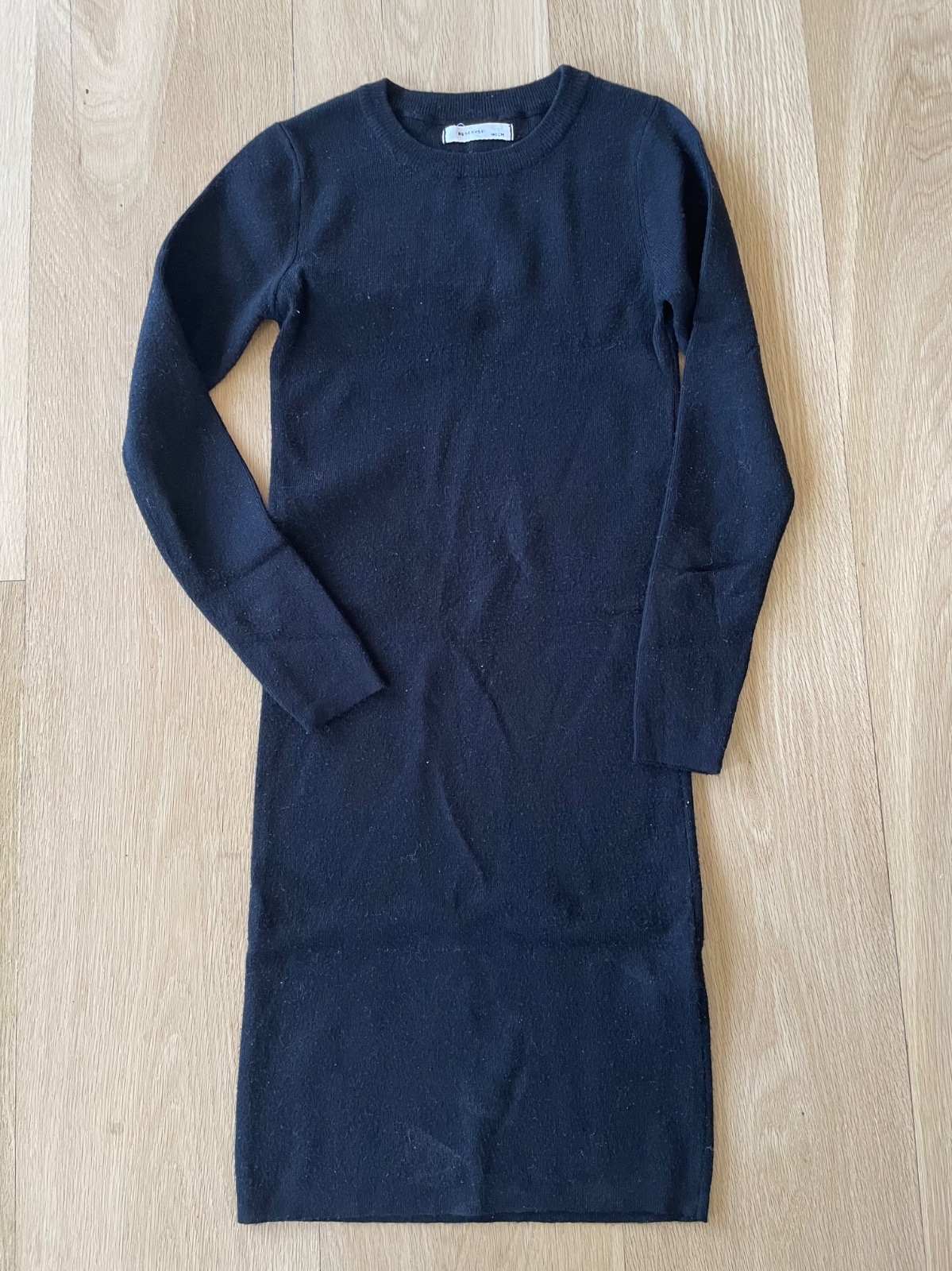 uzke pletene saty na stihle dievca, dlzka cca do pol stehien.