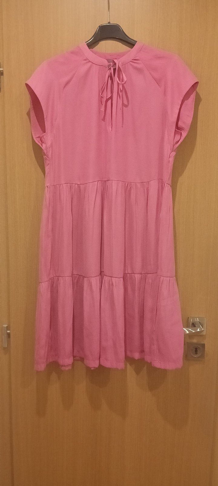 Šaty na bežné nosenie veľkosť 36 ,dlhé sú ako na fotke 90 cm , rukav od krku má trištvrtovy 52 cm a cez prsia má 48x2,boky 50x2 , majú vrecká