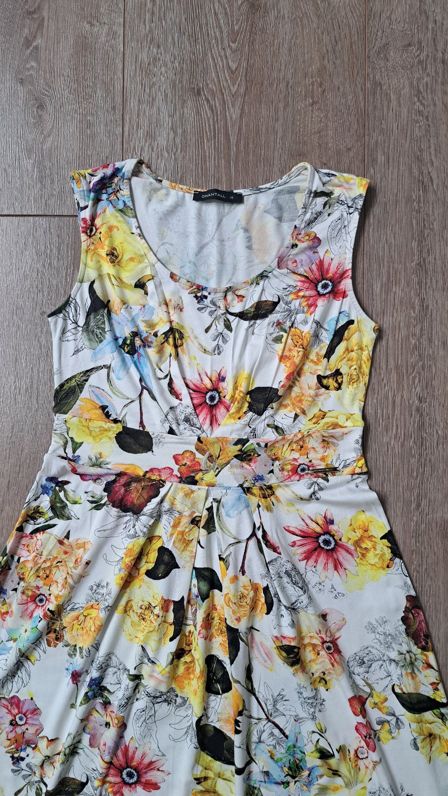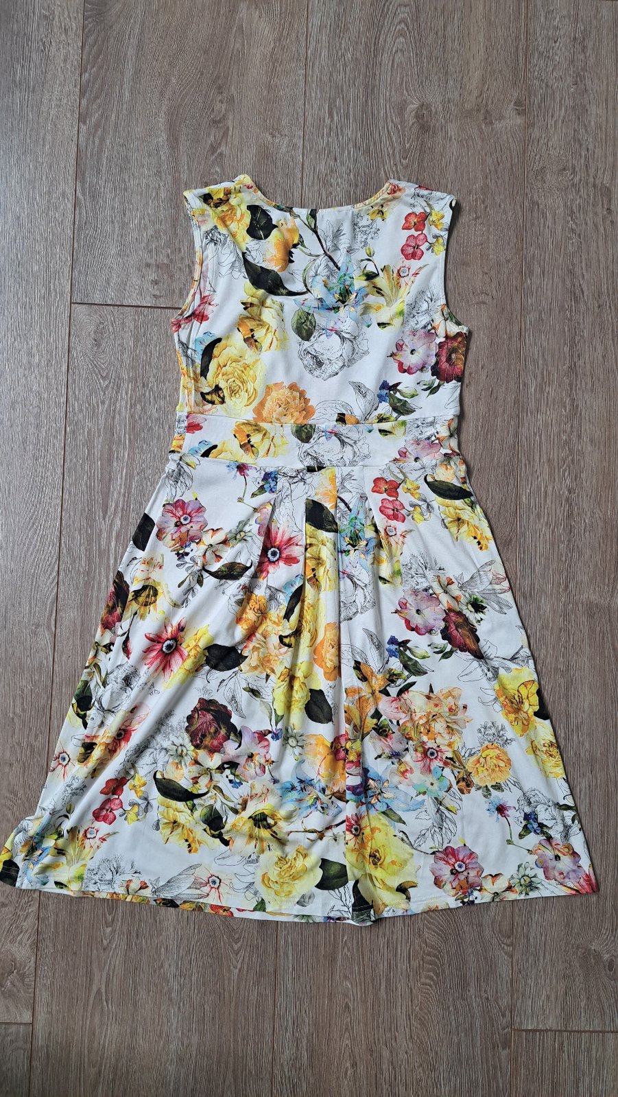 Kvetované bavlnené šaty, vhodné na oslavu ale aj na bežné nosenie. Látka je elastická. Nosené veľmi málo.