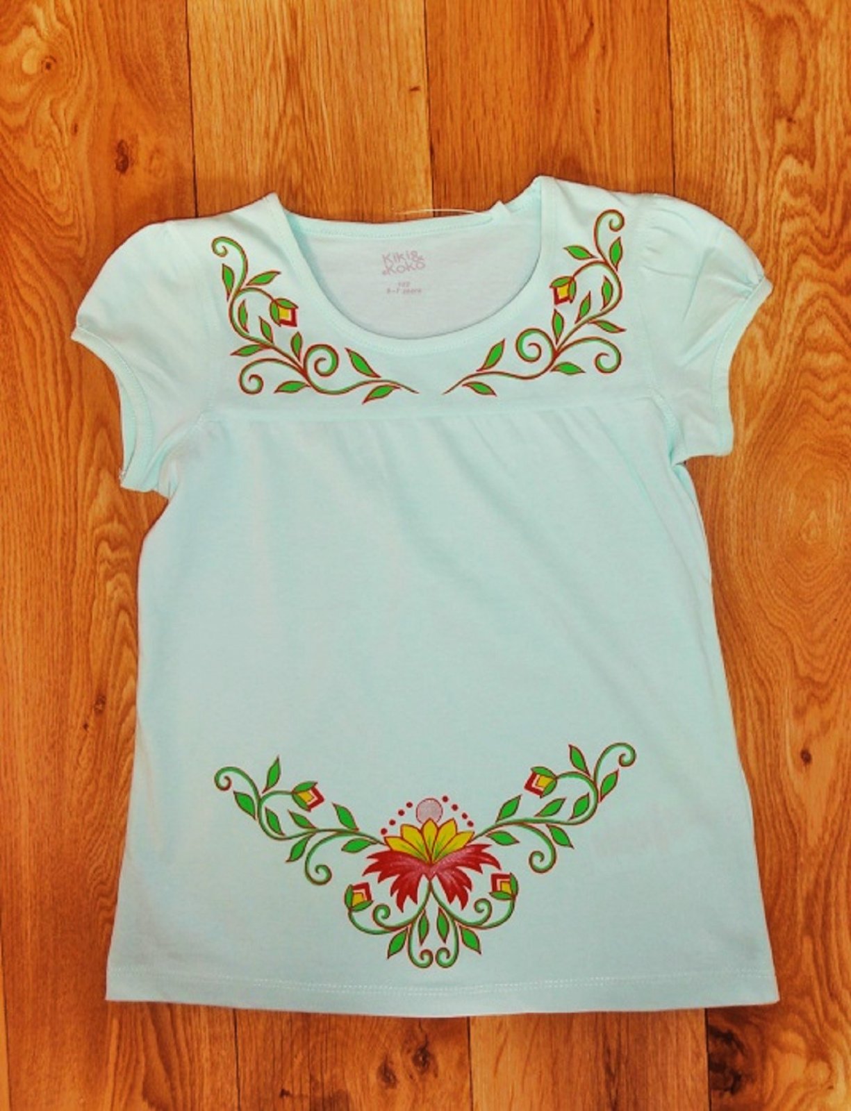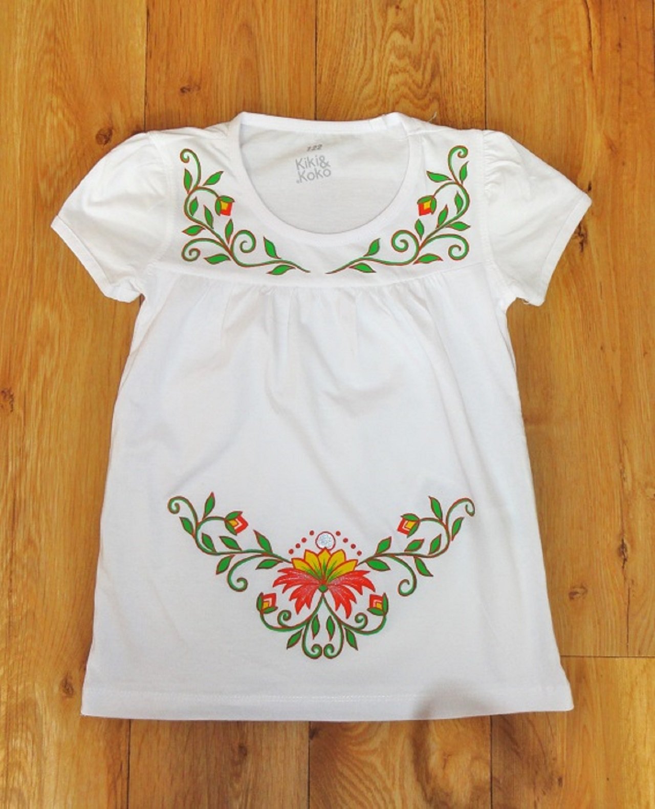 tunika s krátkym rukávom a folklórnym vzorom. Môže byť ako šaty a potom ako tričko. Dĺžka 48cm, cez prsia šírka 35cm, ešte povolí;
