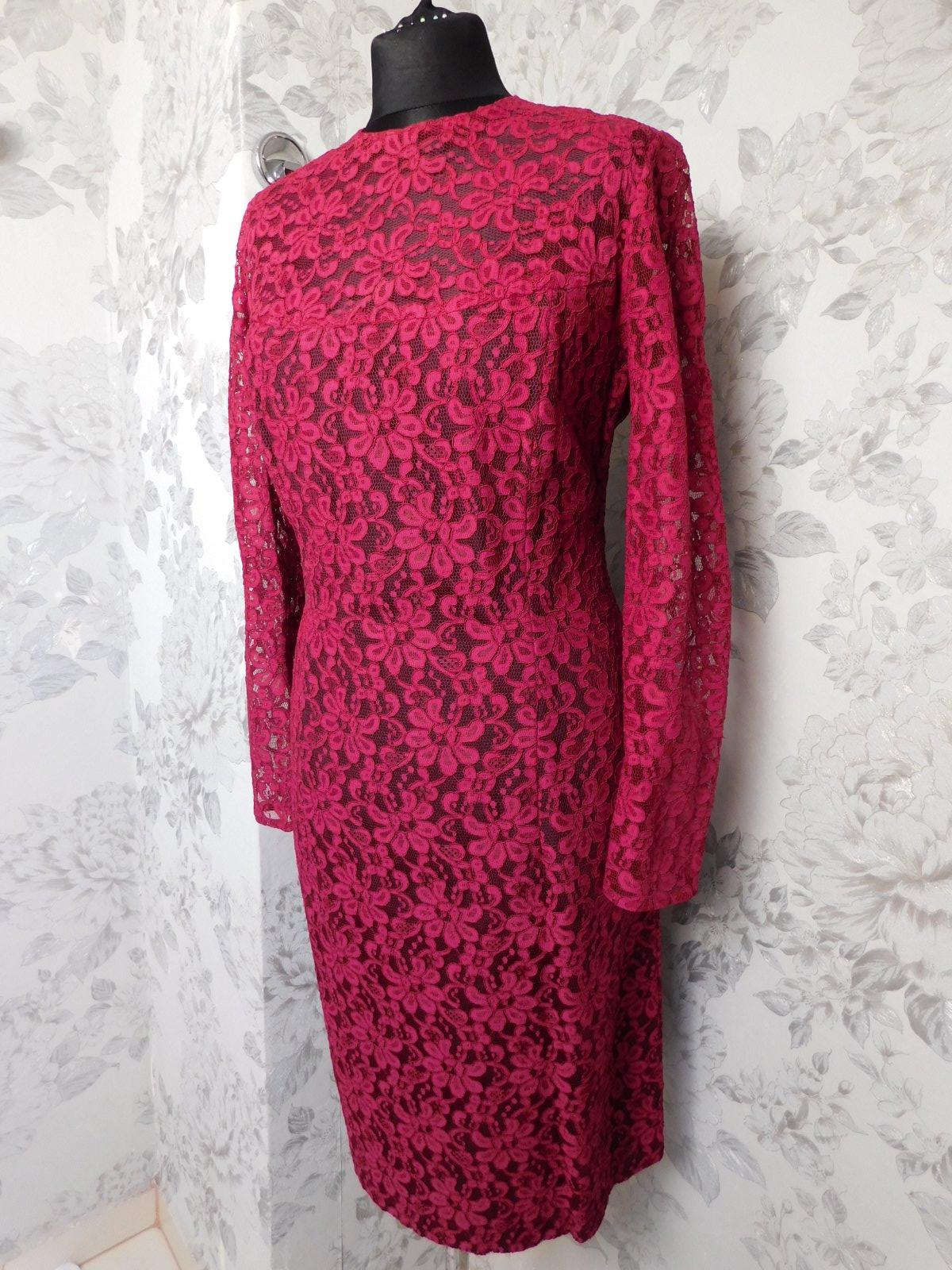 Pekne čipkovane vintage šaty bordovej farby,s podšivkou,vzadu na zips.super stav. m