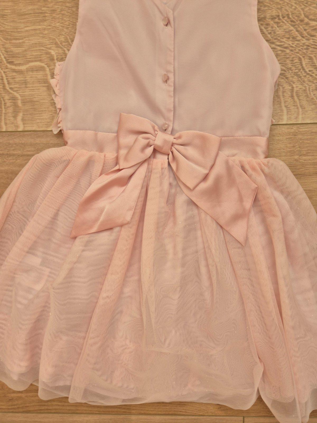 Nádherné flitrované tylové ružové šaty. Veľkosť 128. Značka H&M. Tylové šaty bez rukávov s flitrovou výšivkou. Skryté záhyby vzadu a šev v páse. Zvonová sukňa s dvoma vrstvami tylu a spodnou vrstvo...