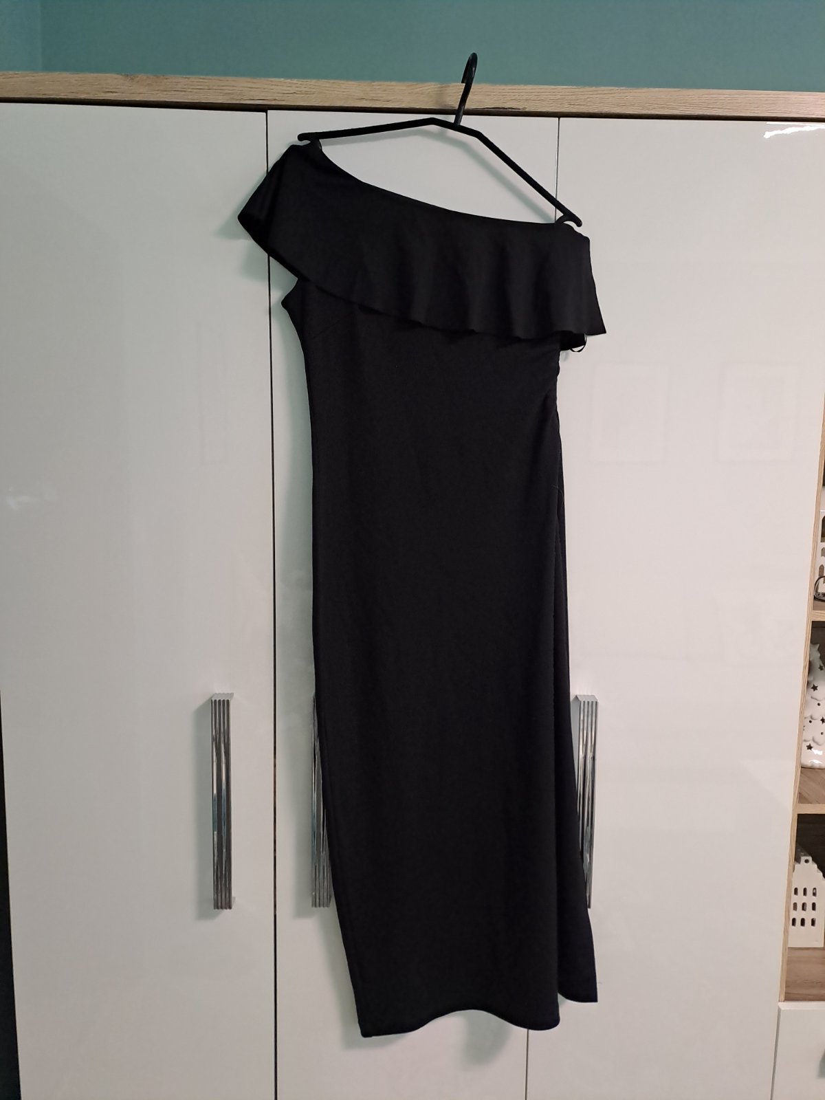 Čierne šaty s volánom a s rozparkom. Bez poškodení.