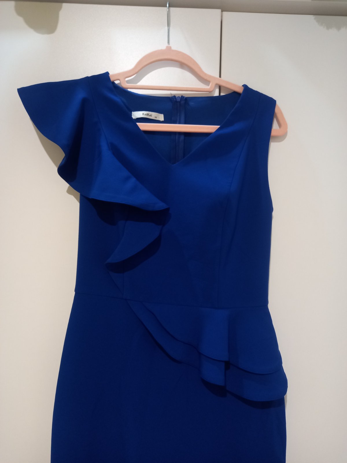 Predam dlhe saty. Farba modra- leskla. Znacka ZOE, vyrobene na Slovensku. Povodna cena 2000,- Sk. Mala som ich oblecene len raz na stuzkovej. Celkova dlzka cca 140 cm. Rozparok 63 cm. Zips vzadu pl...