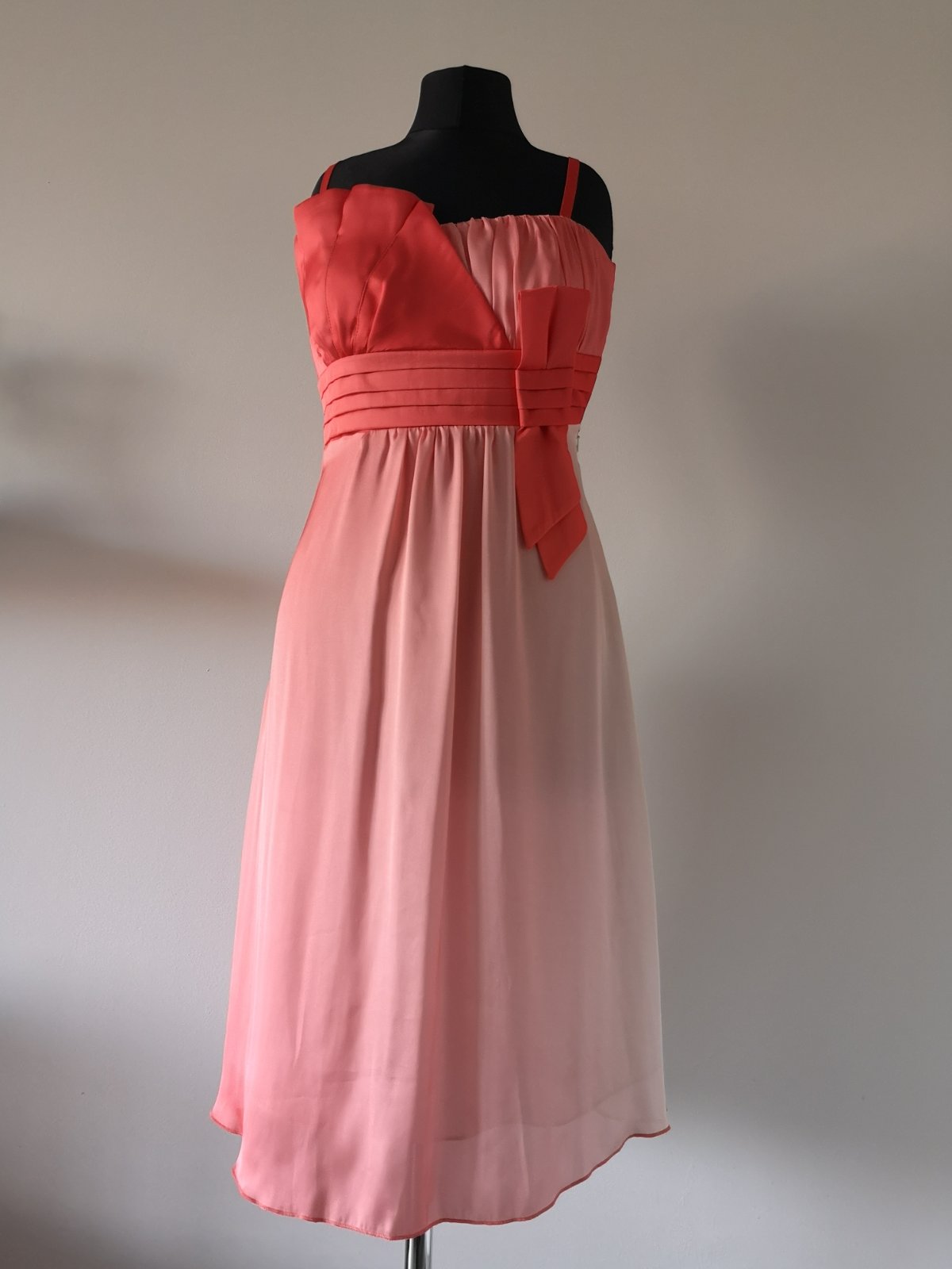 3x oblečené šaty lososovej farby s ramienkom. Dĺžka: 82cm
