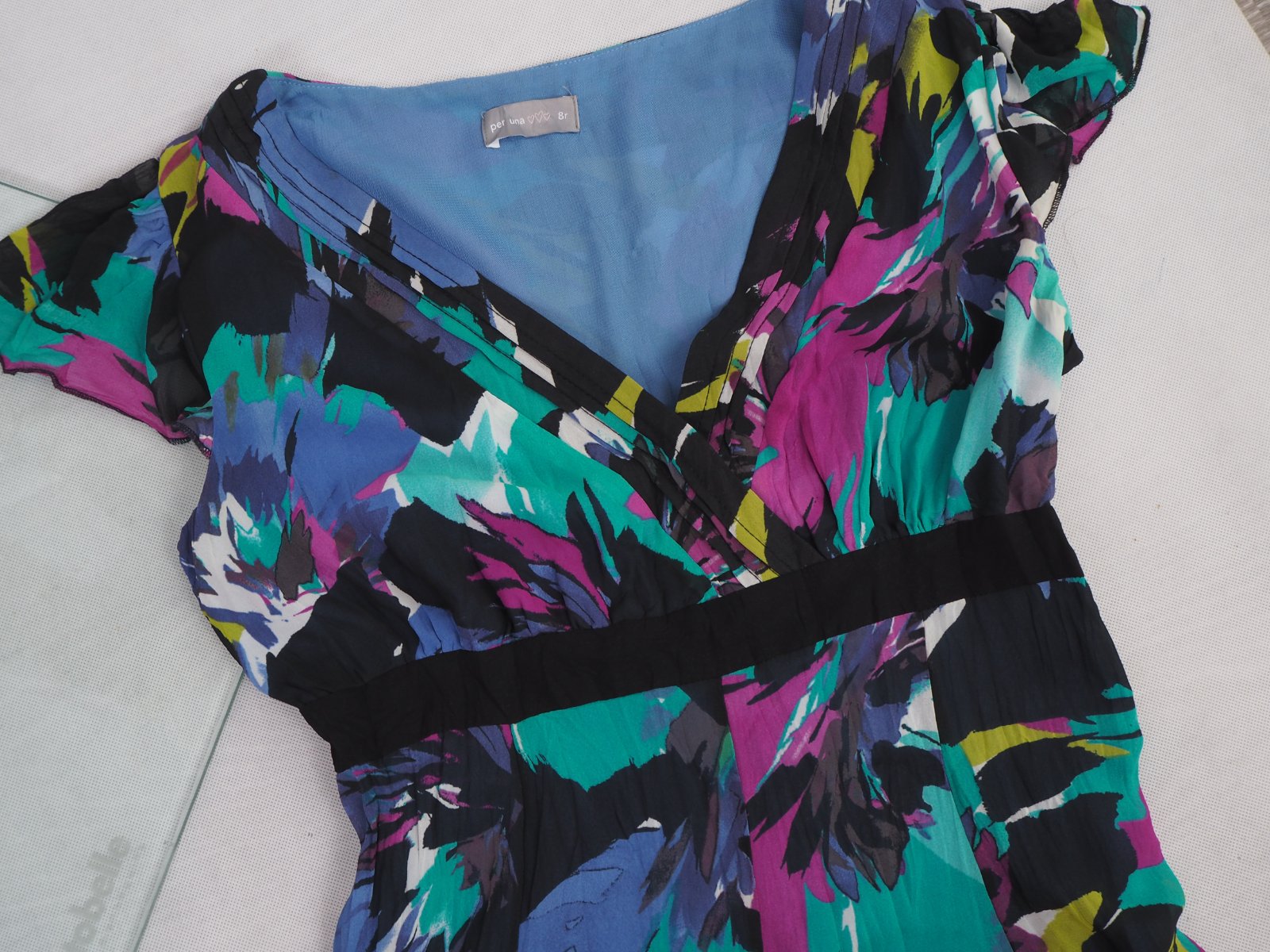 Kvalitné letné šaty, pestrofarebné, na boku zips, podšité, materiál 100% polyester, super stav.