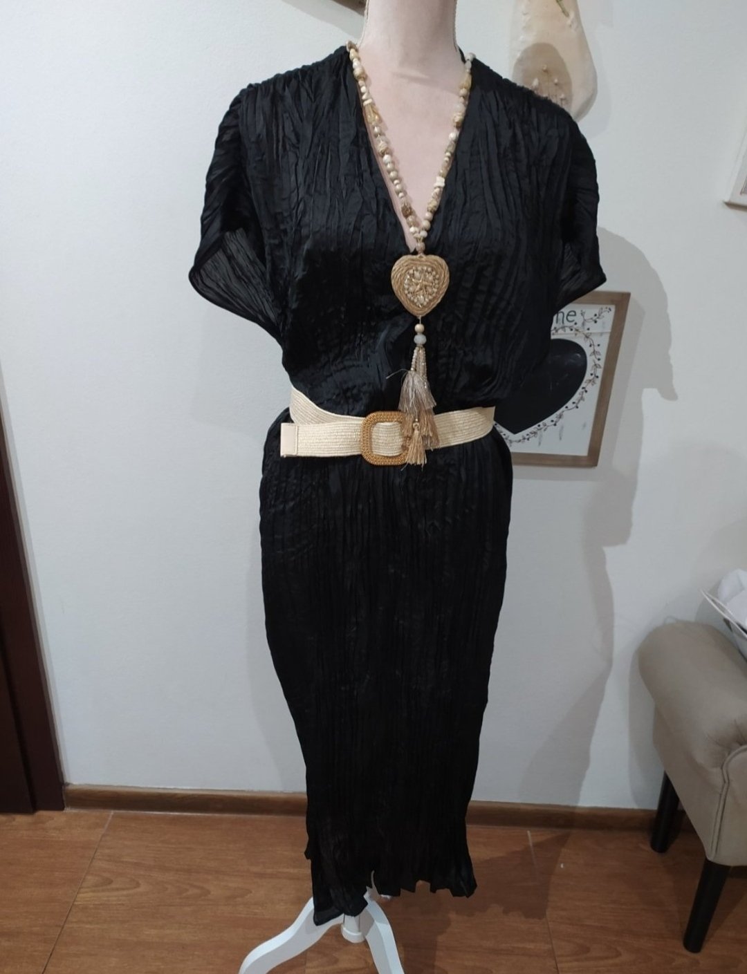 Jednoduché saténové šaty,plisovane,veľ uvedená XS,vhodné až do veľ M,preto dávam veľ Uni nakoľko sedia od XS-M ,saty majú rovný strih,pekne ukážu doplnené opaskom,nie je súčasťou