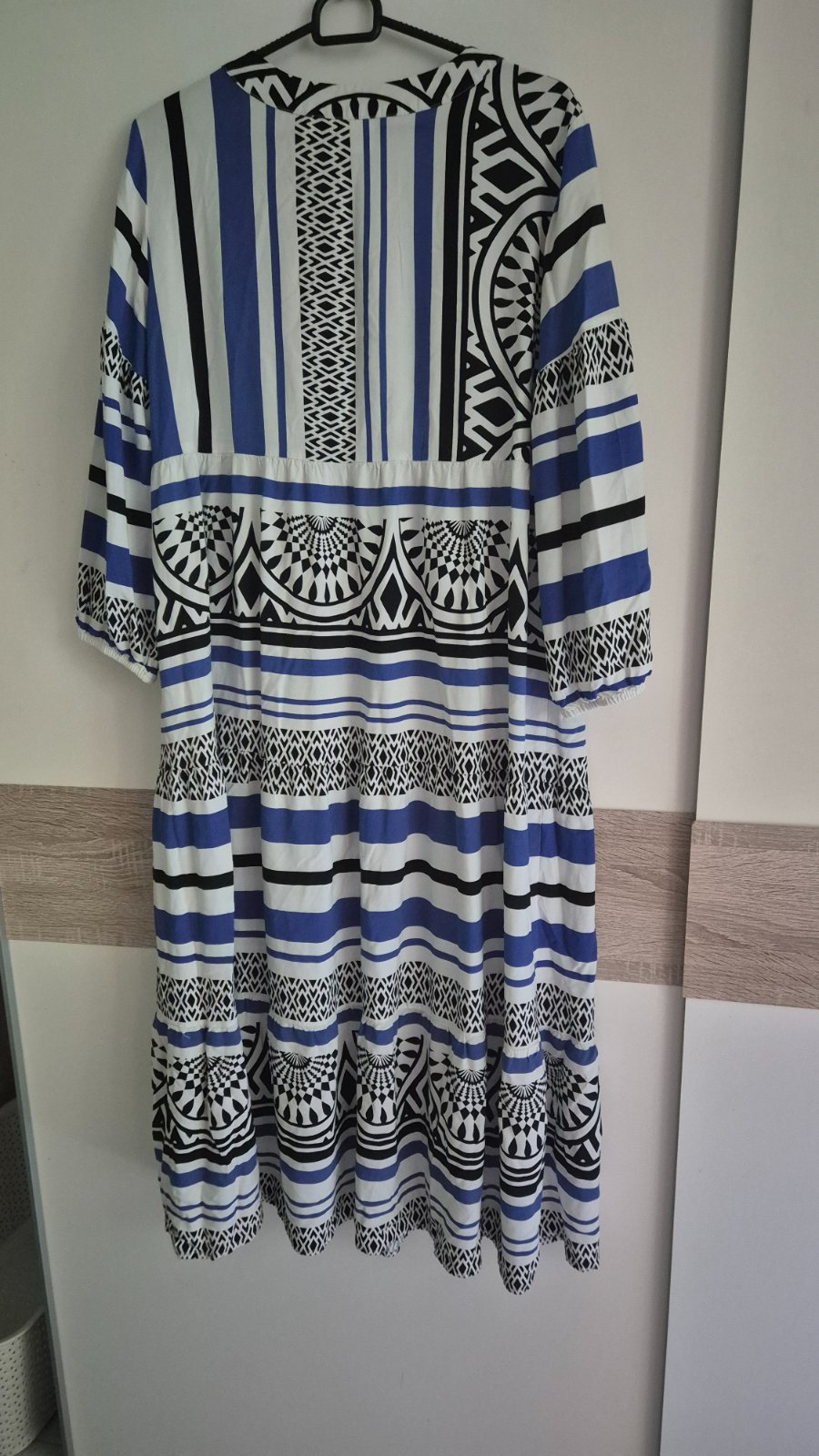 Oblečené asi raz. Perfektný stav. Ľahké, príjemný materiál, ideál letné šaty. Dĺžka cca 136 CM, šírka v prsiach cca do 56 CM.