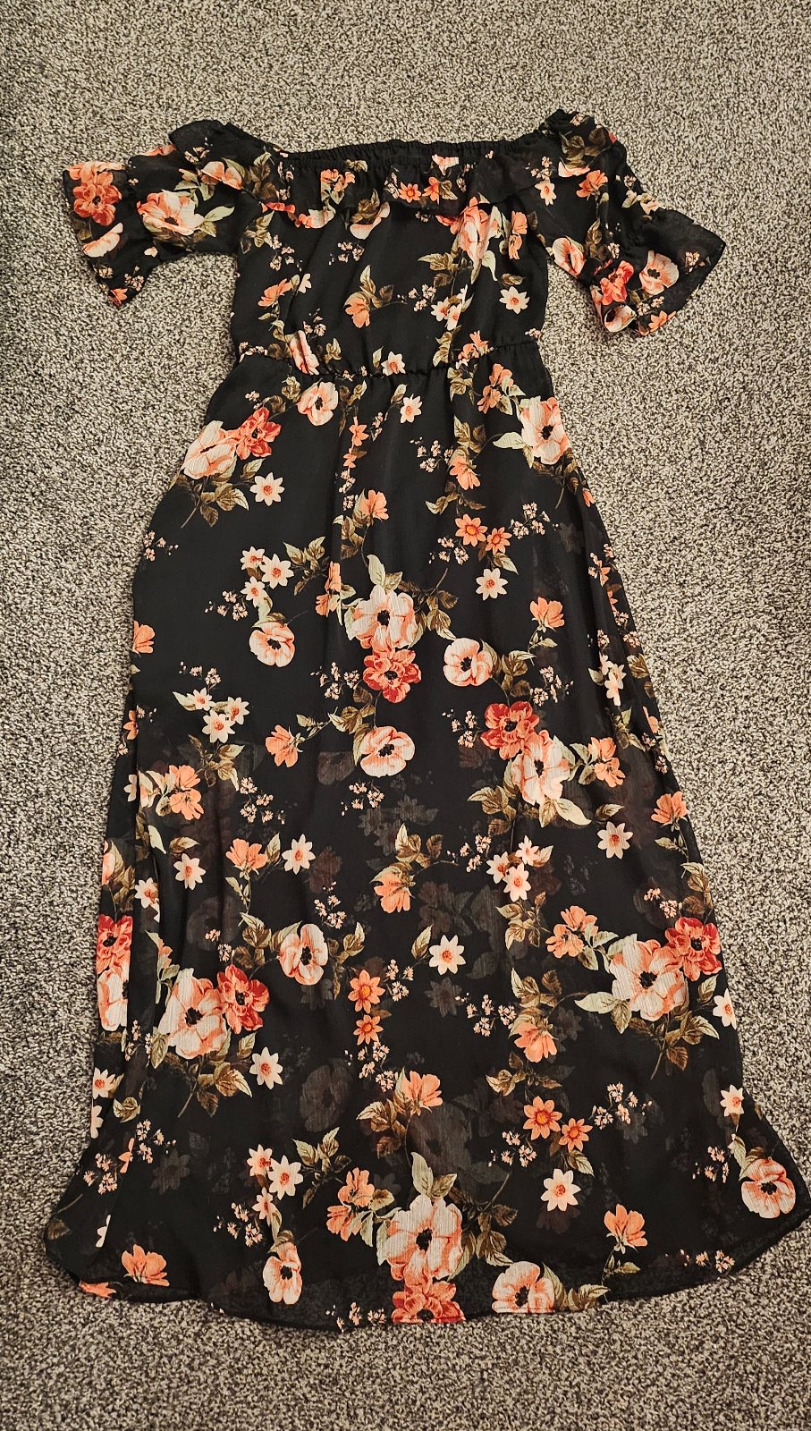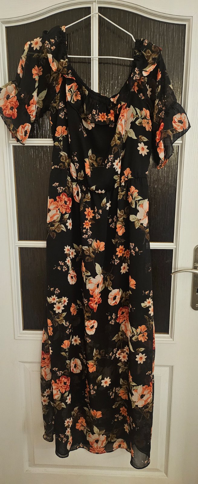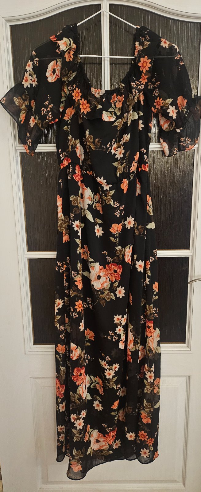 Dlhé šaty, vrch a do polky je spodnička,dalej trošku presvitá, velmi pekné - efektné.