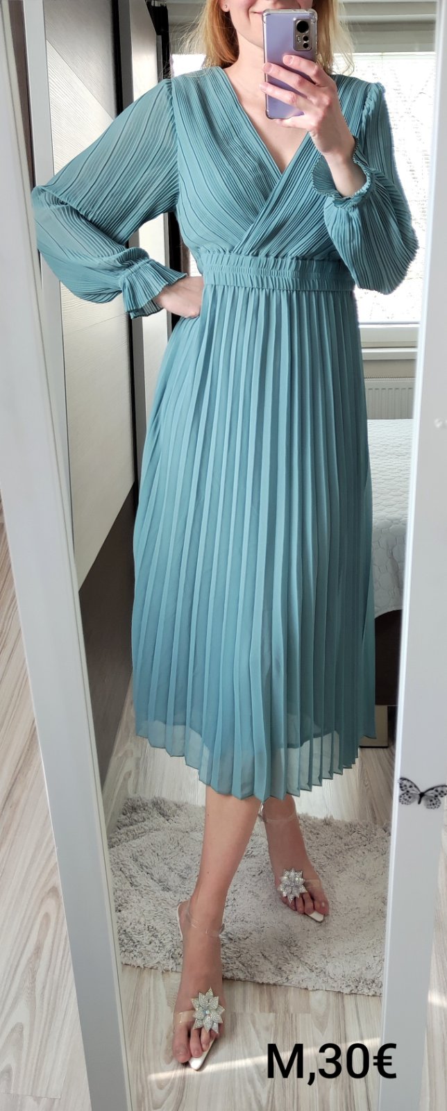 Pekné plisované šaty vo veľkosti M, cena 30€. Menšia vada na pleci.