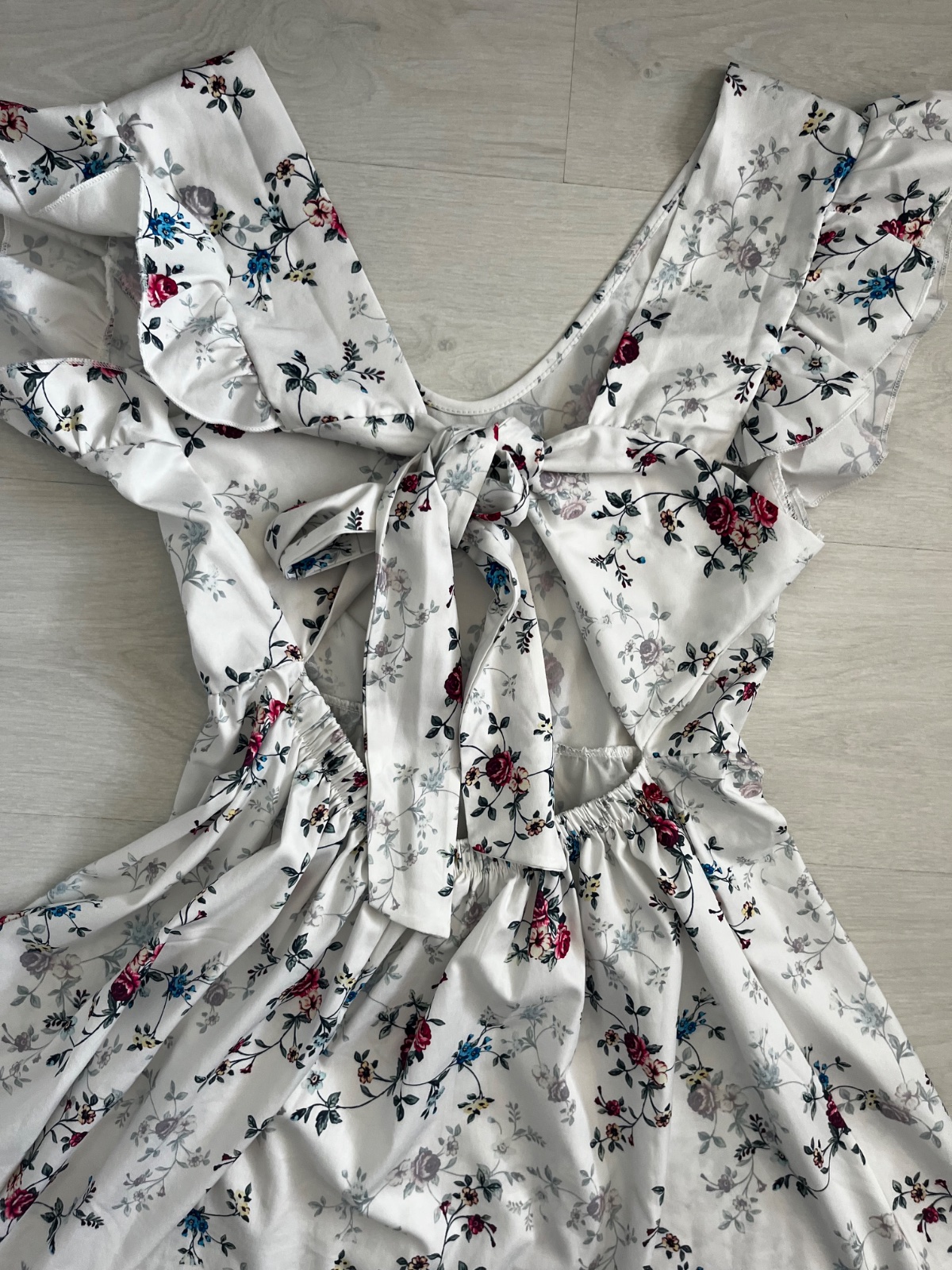 Krásne šaty s holým chrbátom, zdobí mašľa na zaviazanie a stiahnutie. Vzdušné, ľahké, odporúčam. V dobrom stave bez poškodenia.