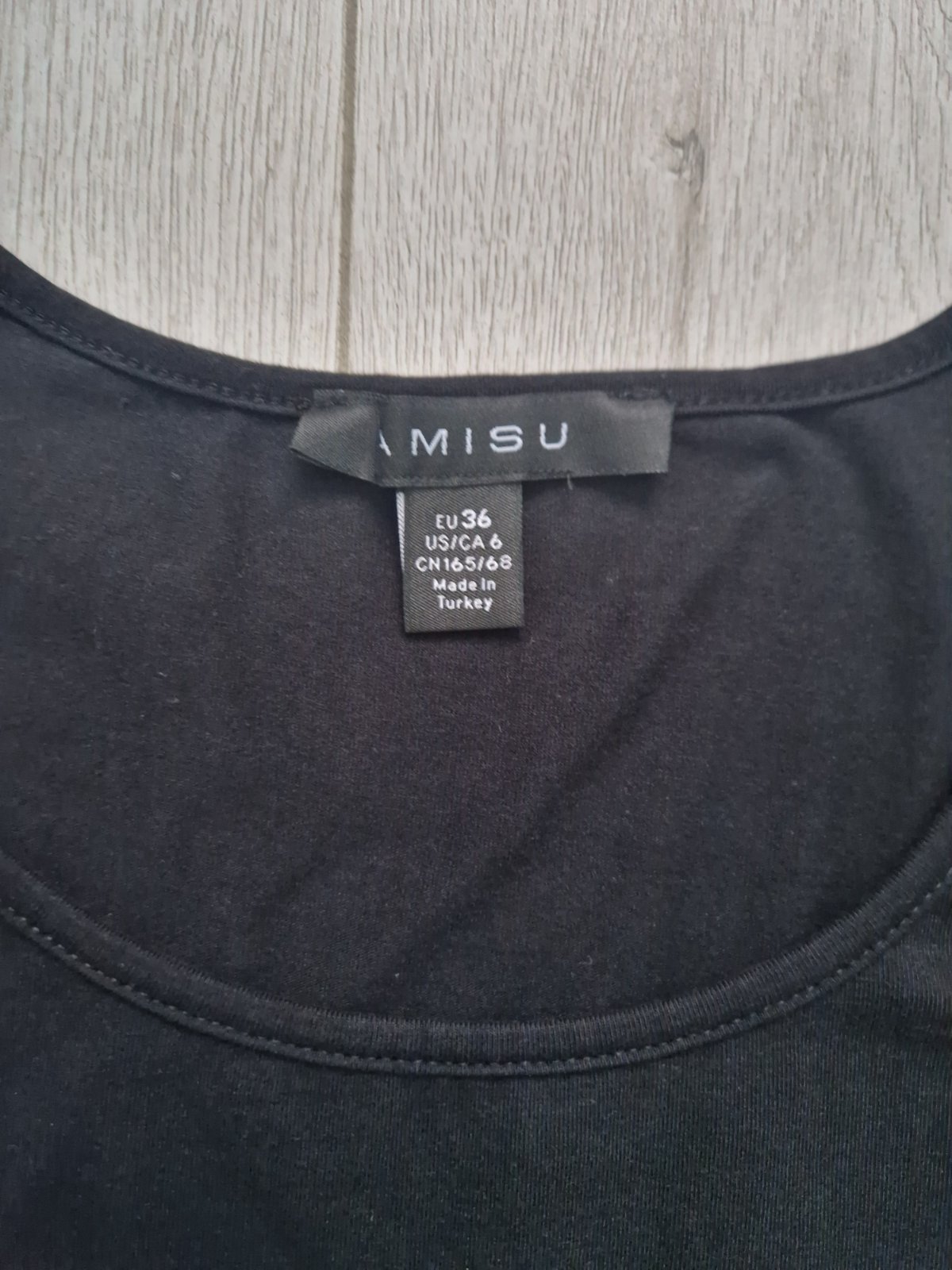 Darujem k nakupu nad 15€ dievcenske basic cierne saty zn.AMISU,vel.36/S, 3/4 rukav,bez chyb.