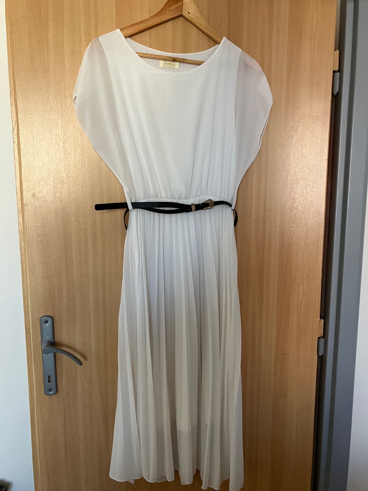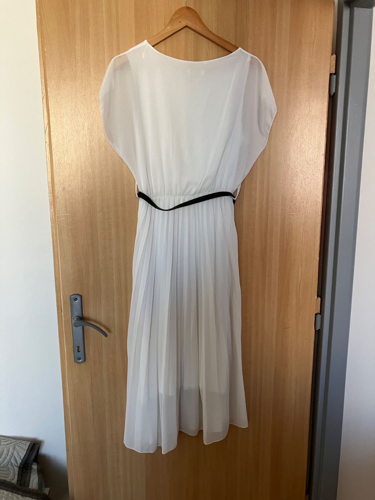 Predám nové, nenosené a nepoškodené biele krajkové šaty s krátkym rukávom. Veľkosť S-M. Šaty sú podfutrované, preto nie sú priesvitné. Sú mierne elastické. Šírka v páse 42cm. Dĺžka šiat 92cm.