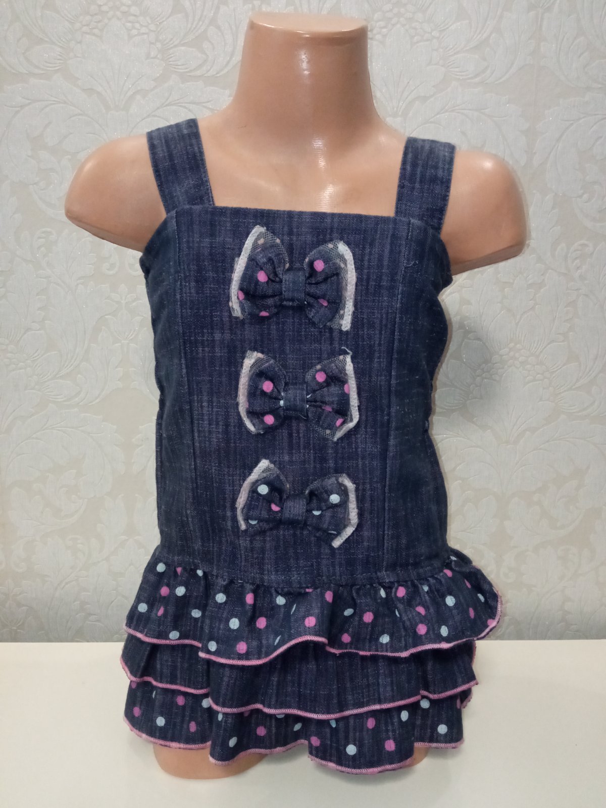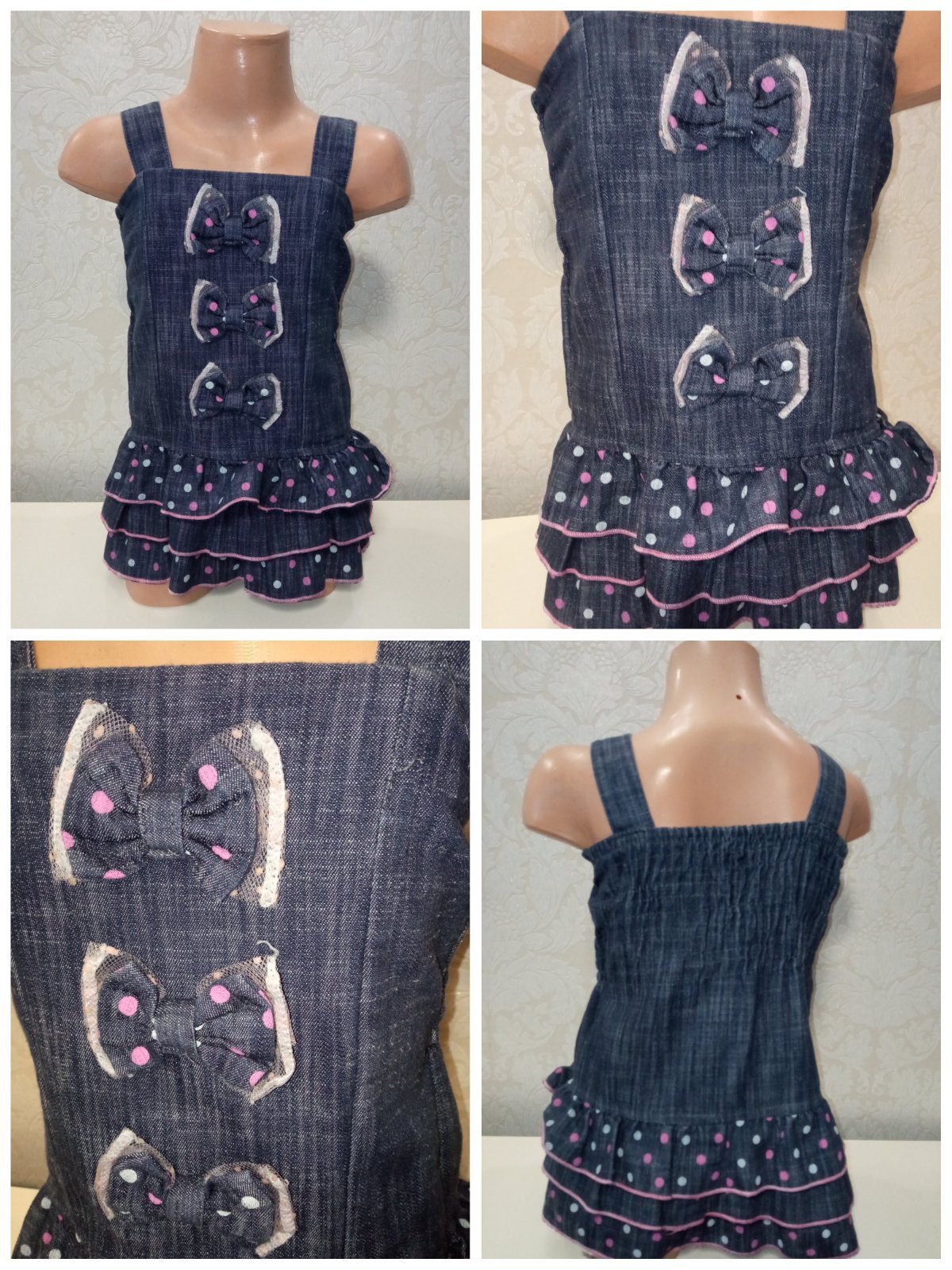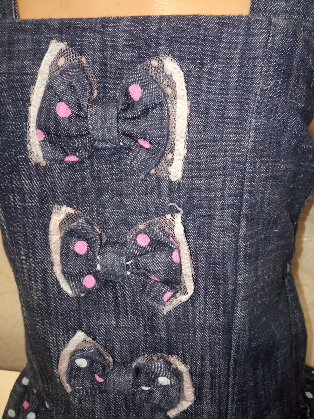 Dievčenské rifľové šaty s mašličkami (98)