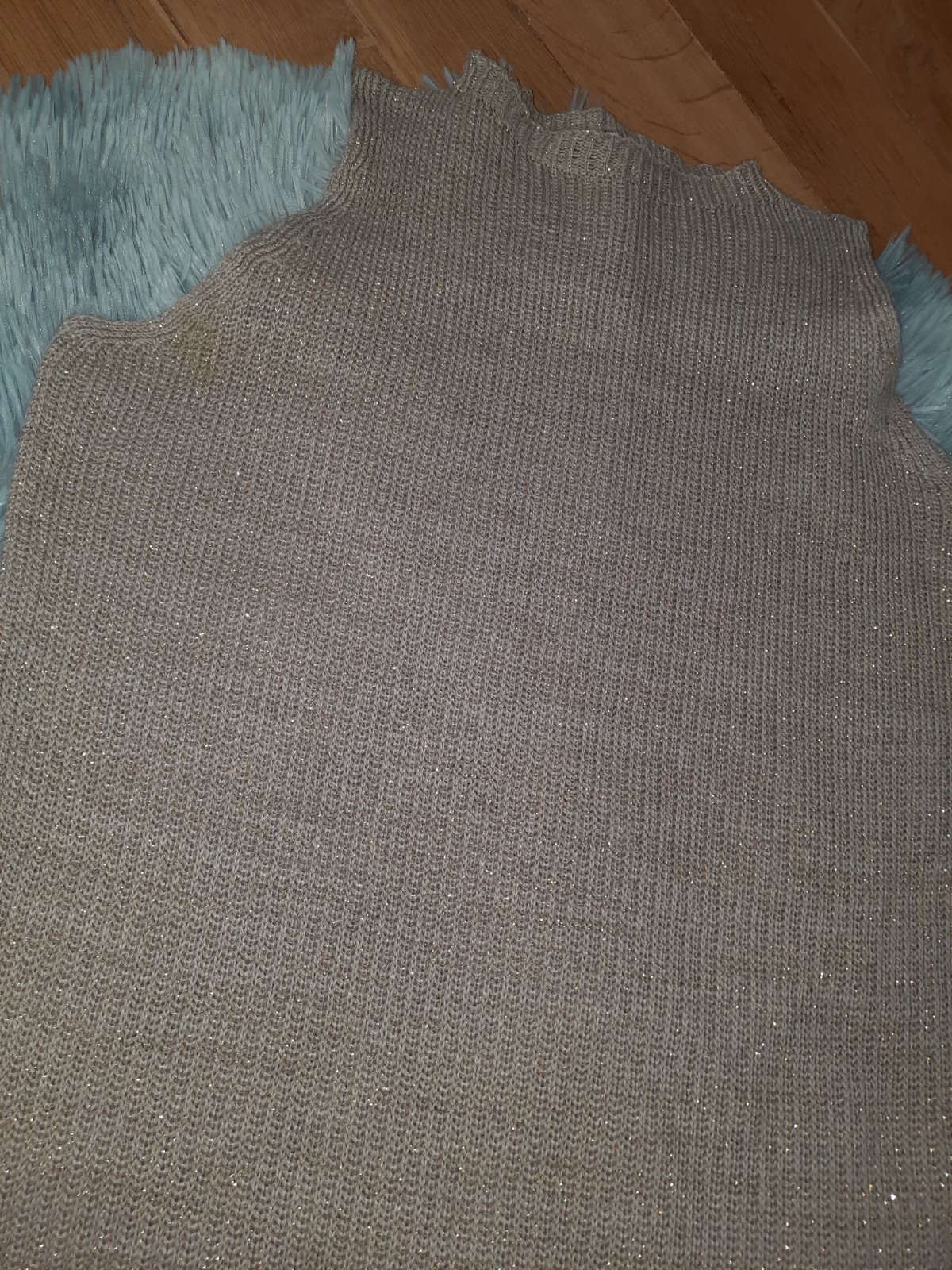 Predám jeden peknỳ kúsok. Mozno nosit ako saty,alebo vesta. Farba bézová so zlatou. Pekný kúsok.