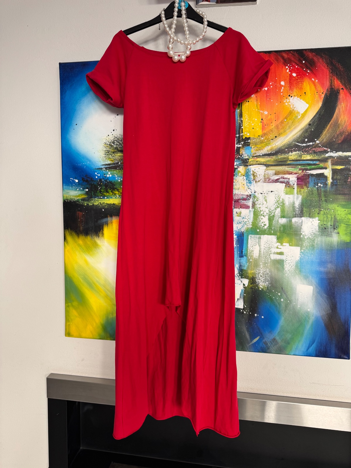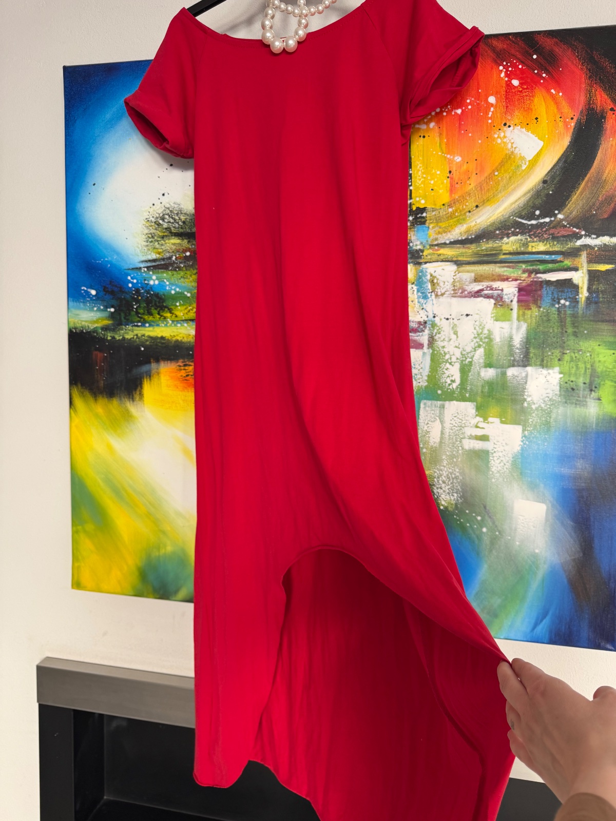 Dámske šaty s krátkym rukávom – Elegantná jednoduchosť pre každý deň Objavte dokonalý kúsok, ktorý kombinuje pohodlie s nadčasovým štýlom. Tieto červené dámske šaty s krátkym rukávom sú ušité z kv...