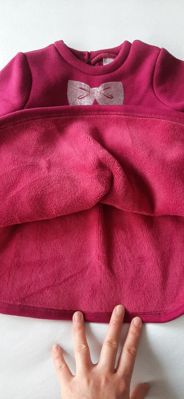 Dievčenské zateplené šaty v top stave. Dĺžka šiat je 43 cm a dĺžka rukávu 29 cm.