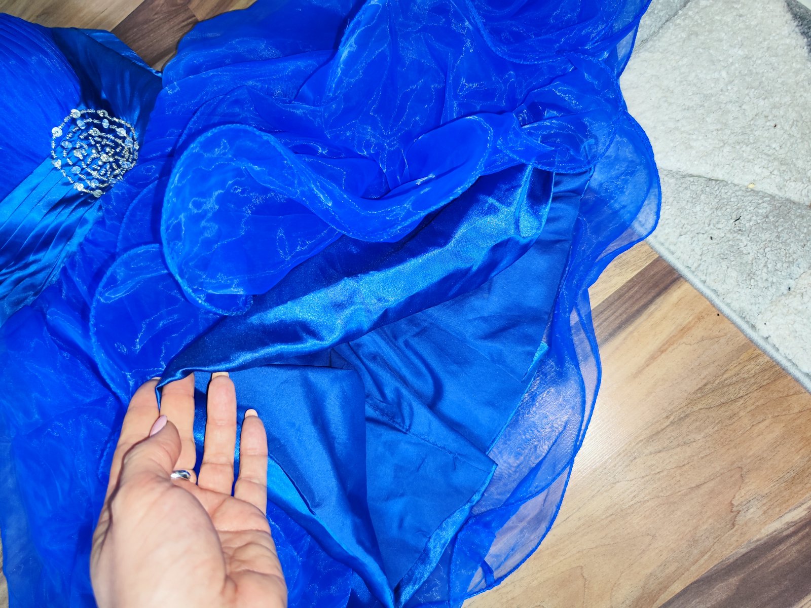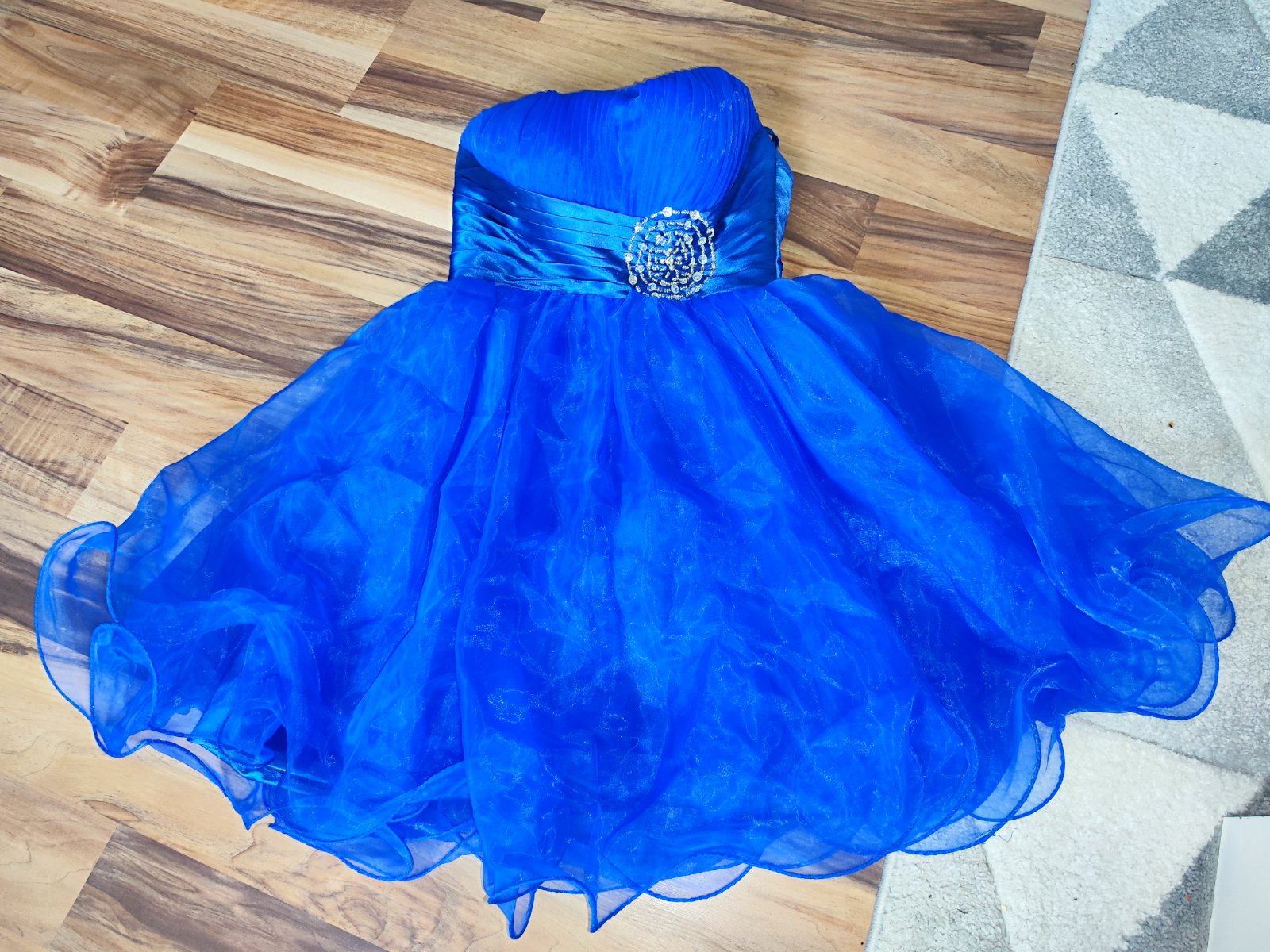 Predám šaty , veľkosť xs ,farba je nádherná kralovská modrá ,mala som ich len raz oblečené, pôvodná cena bola 45 eur. Moja cena je 20 eur